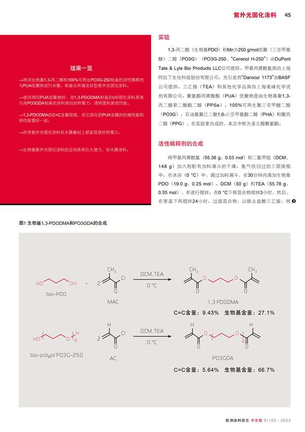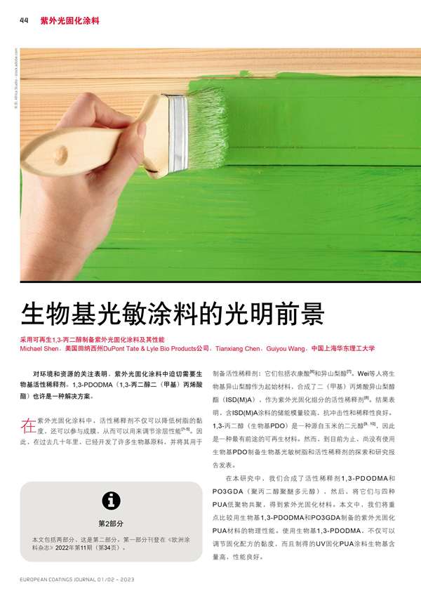 采用可再生1,3-丙二醇制備紫外光固化涂料及其性能