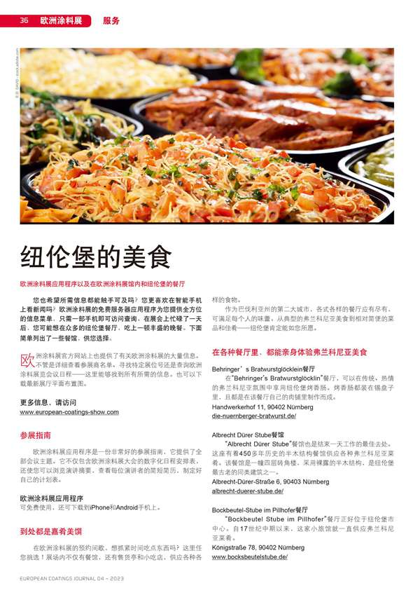 摘要:歐洲涂料展應(yīng)用程序以及在歐洲涂料展館內(nèi)和紐倫堡的餐廳