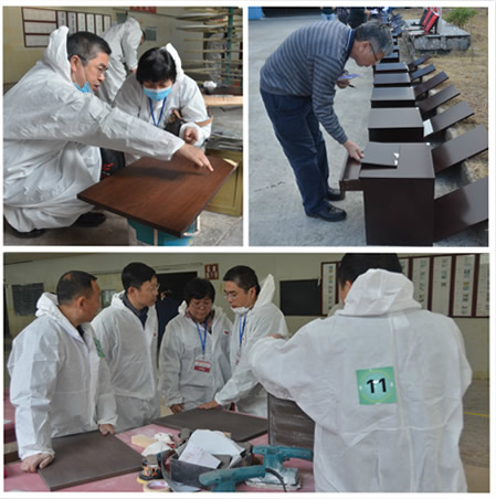 本次大賽預(yù)賽共26家參賽隊(duì)伍,預(yù)賽后進(jìn)入決賽,預(yù)賽結(jié)果將于2016年1月份揭曉。組委會(huì)成立專(zhuān)家評(píng)審委員會(huì),參照參賽樣板的理化檢測(cè)結(jié)果和參賽評(píng)定,進(jìn)行綜合評(píng)分,現(xiàn)場(chǎng)涂裝作品現(xiàn)已送檢深圳市計(jì)量質(zhì)量檢測(cè)研究院檢測(cè),將耐水性、附著力、熱交變等指標(biāo)按照相應(yīng)的標(biāo)準(zhǔn)進(jìn)行檢測(cè)。主辦方將選出50%成績(jī)優(yōu)異的預(yù)賽廠家參加決賽。決賽成績(jī)優(yōu)秀者將榮獲中國(guó)水性木器涂料涂裝大賽技術(shù)能手、中國(guó)水性木器涂料涂裝大賽技術(shù)標(biāo)兵等稱號(hào),并以資鼓勵(lì)。中國(guó)涂料工業(yè)協(xié)會(huì)將聯(lián)合家具、門(mén)窗及櫥柜等行業(yè)協(xié)會(huì),在下游行業(yè)重點(diǎn)推廣此次的大賽及相應(yīng)的應(yīng)用示范效果。本次大賽開(kāi)幕式由《中國(guó)涂料》雜志社有限公司、北京涂博國(guó)際展覽有限公司總經(jīng)理趙中國(guó)先生主持。
