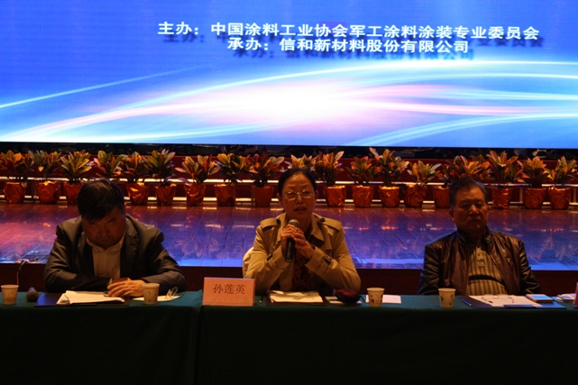 中國涂料工業(yè)協(xié)會會長孫蓮英女士、軍工涂料涂裝專業(yè)委員會顧問倪宏強將軍、董文久將軍、郝葉力將軍、紀順心大校;中國涂料工業(yè)協(xié)會副會長王詩榕先生、黃繼偉先生、張衛(wèi)中先生等領導,以及來自全國各地軍工涂料涂裝相關生產(chǎn)企業(yè)80余人出席了此次大會。會議由軍工涂料涂裝專業(yè)委員會副主任馬詠楠先生主持。