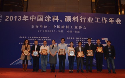 2013年3月28日晚,由北京涂博國際展覽有限公司聯(lián)合《中國涂料》雜志社有限公司和《消費(fèi)日報》社名牌產(chǎn)品宣傳保護(hù)中心共同舉辦的“2011中國最受下游用戶歡迎的涂料涂裝品牌”及“2011中國涂料行業(yè)十大風(fēng)云人物”CCTOP10授牌典禮也在此隆重舉行。
