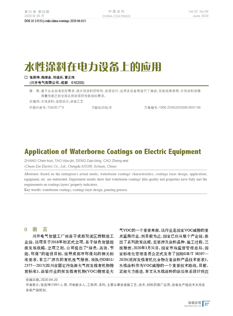 本文系作者@張辰坤,陶厚金,鄧道兵,曹正偉 授權中國涂料網(wǎng)發(fā)表,并經中國涂料網(wǎng)編輯,未經允許不得轉載,如需轉載請聯(lián)系chinacoatingnet@vip.163.com