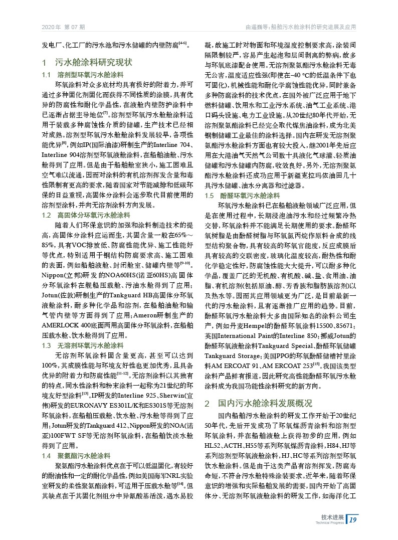 船舶污水艙涂料的研究進(jìn)展及應(yīng)用