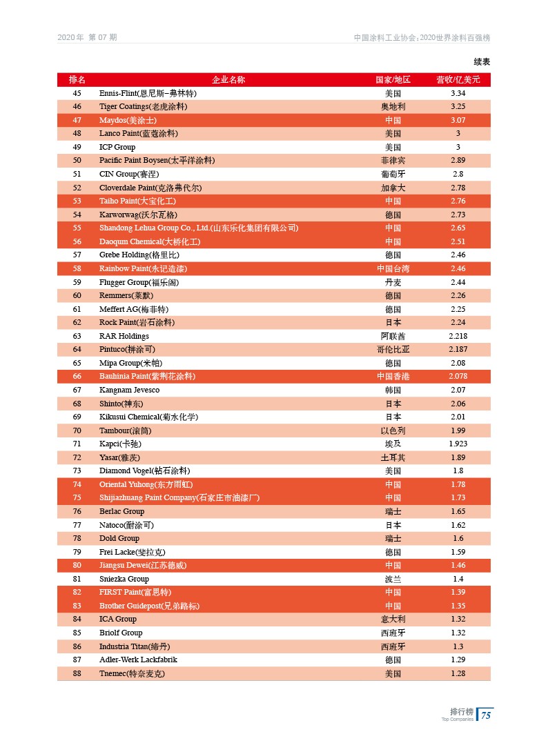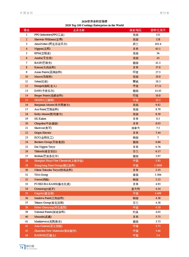 2020世界涂料百強(qiáng)榜