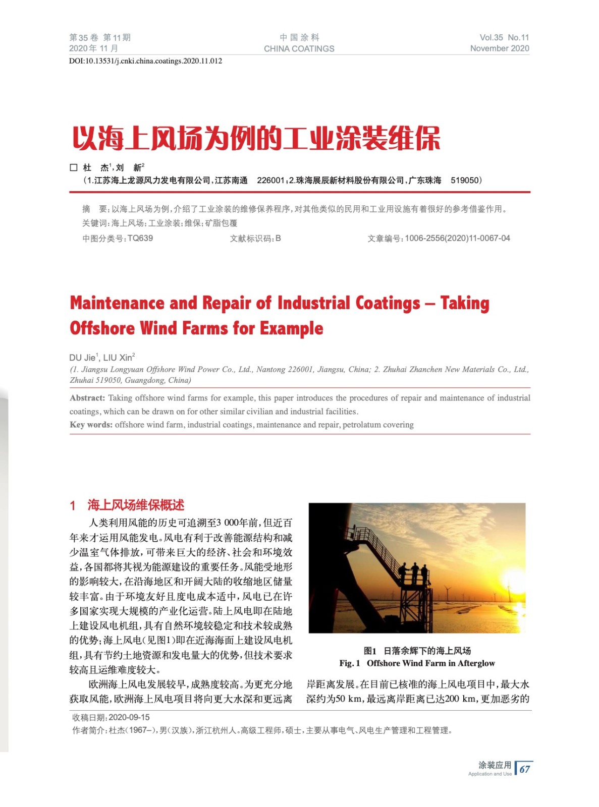 以海上風場為例,介紹了工業(yè)涂裝的維修保養(yǎng)程序,對其他類似的民用和工業(yè)用設(shè)施有著很好的參考借鑒作用。