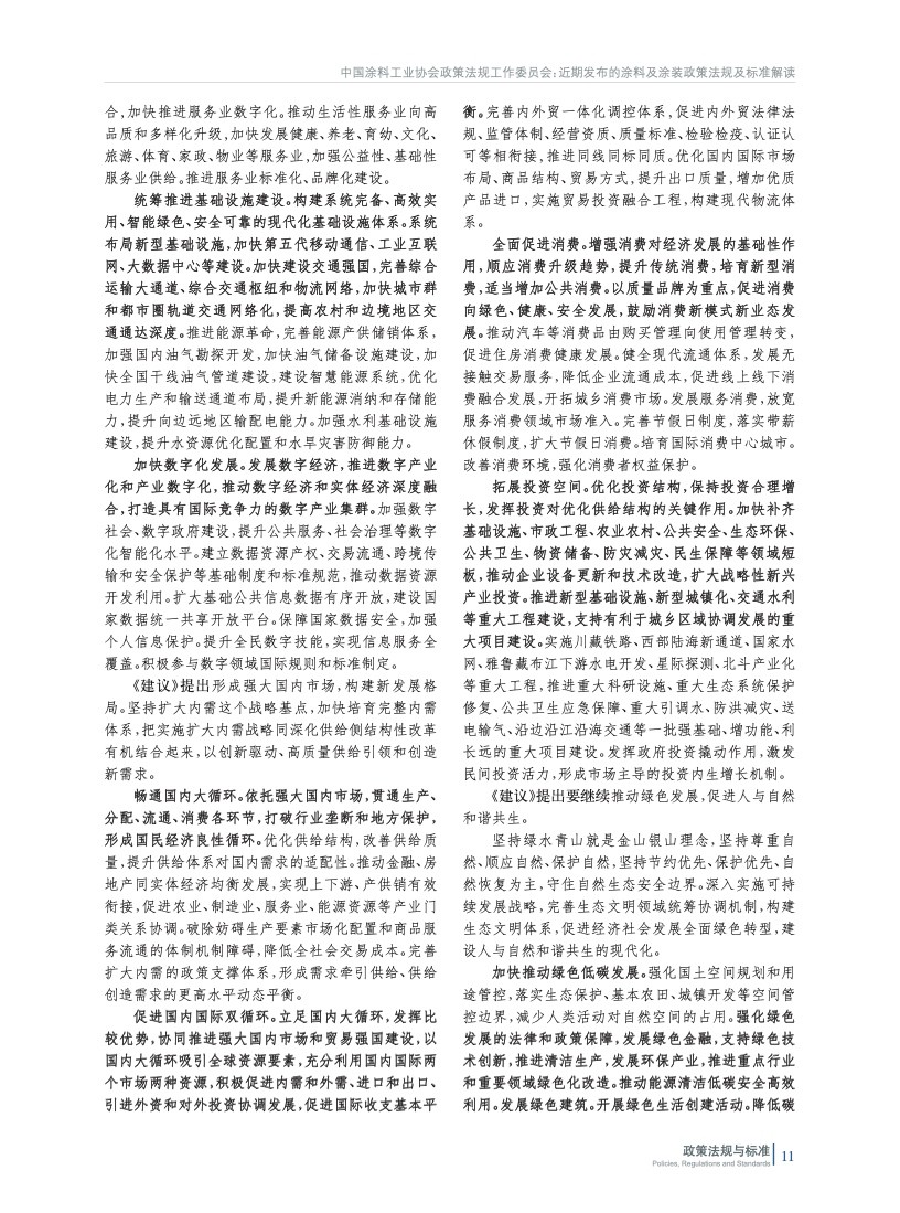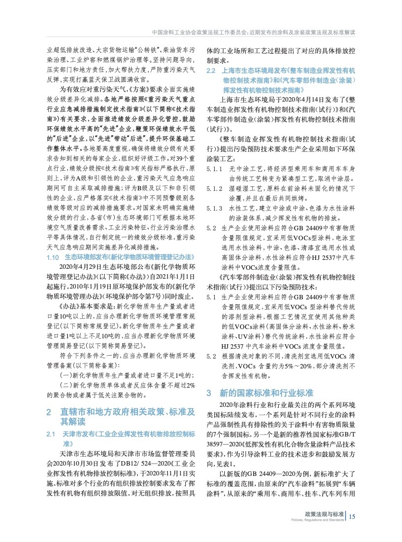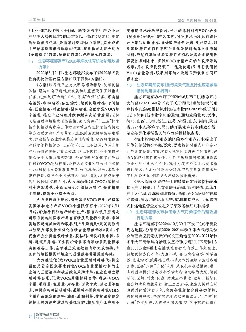 摘要:編者按:回首極不平凡的2020年,面對嚴峻復雜的國內外環(huán)境特別是新冠肺炎疫情嚴重沖擊,我國國民經濟穩(wěn)定恢復、就業(yè)民生保障有力、主要目標完成好于預期,書寫下一份非凡的經濟成績單。中國涂料工業(yè)協(xié)會政策法規(guī)工作委員會將2020年國家和地方出臺的與涂料和涂裝相關的政策法規(guī)和標準進行了梳理和匯總,將政策法規(guī)和標準中關于涂料工業(yè)的內容原文摘錄,并由行業(yè)內的專家進行了解讀,以便于行業(yè)同仁掌握政策動態(tài)和要點。