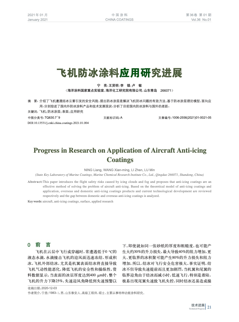 摘要:介紹了飛機(jī)遭遇結(jié)冰云霧引發(fā)的安全風(fēng)險(xiǎn),提出防冰涂層是解決飛機(jī)防冰問題的有效方法?;诜辣繉永碚撃P?,面向應(yīng)用,分別綜述了國(guó)內(nèi)外防冰涂料產(chǎn)品和技術(shù)發(fā)展現(xiàn)狀,分析了目前國(guó)內(nèi)防冰涂料與國(guó)外的差距。