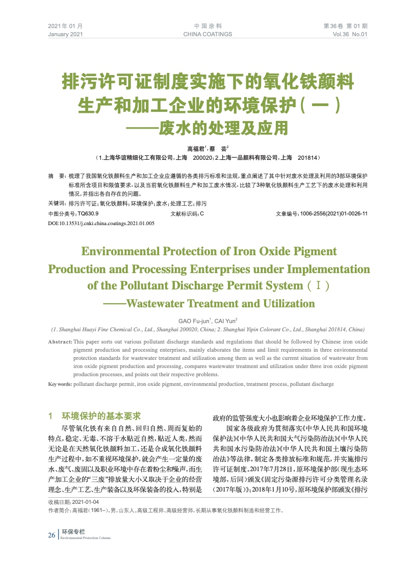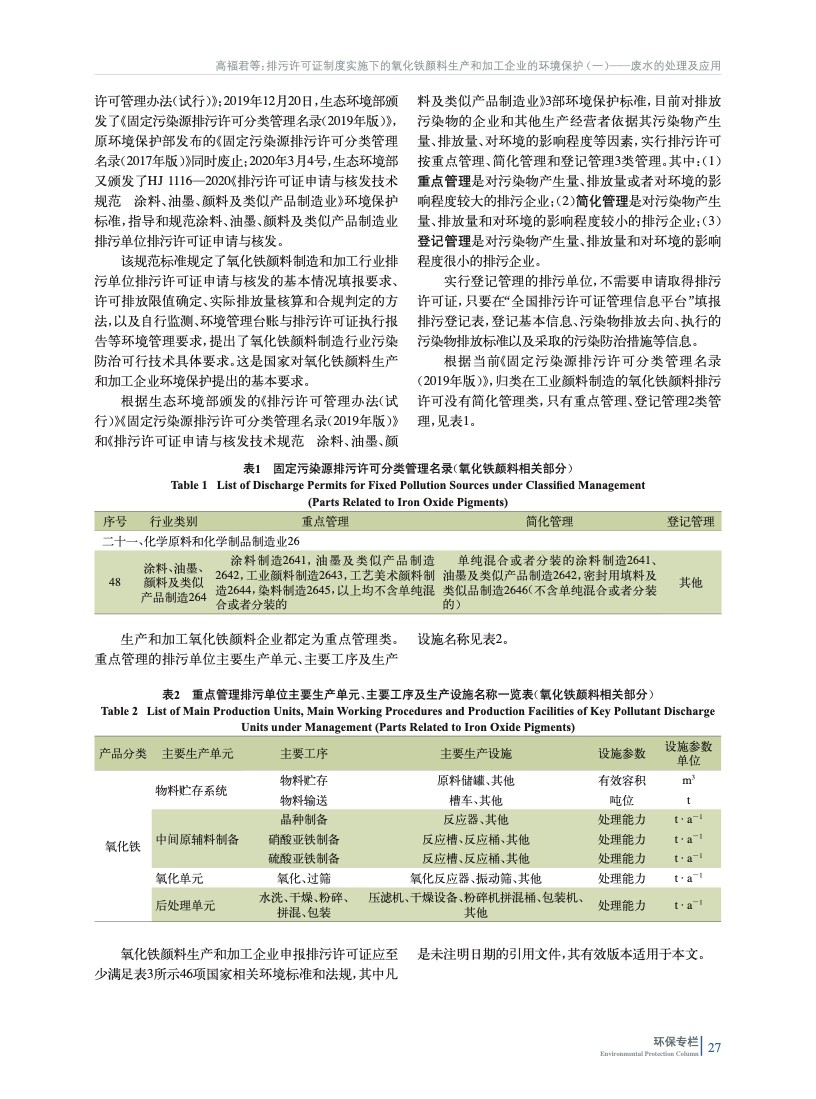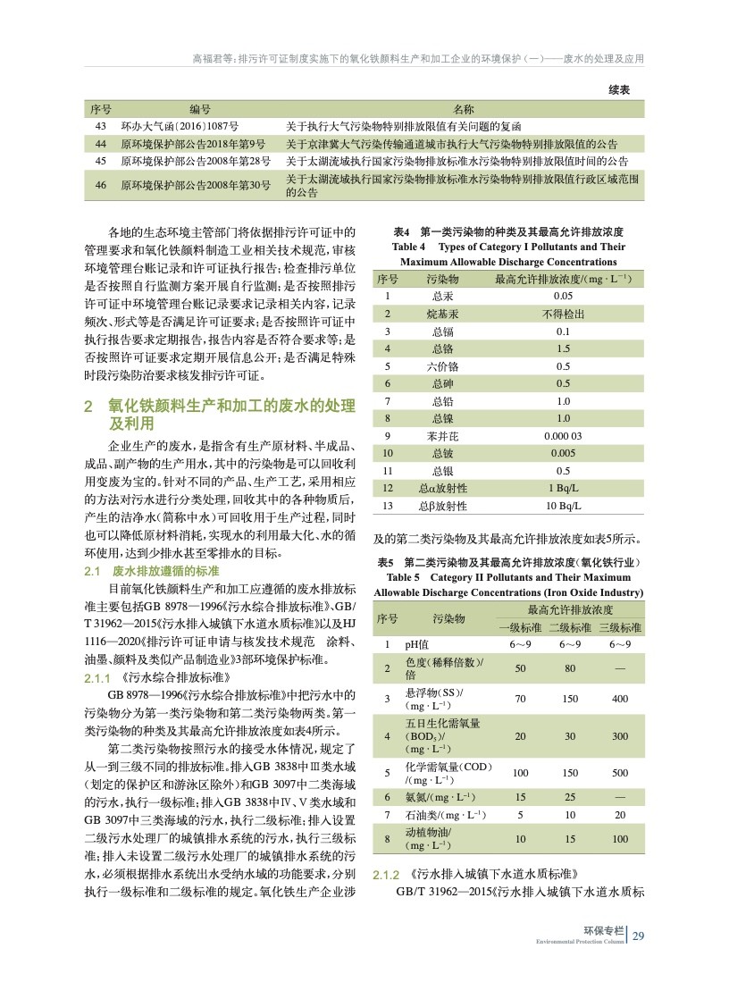 排污許可證制度實(shí)施下的氧化鐵顏料生產(chǎn)和加工企業(yè)的環(huán)境保護(hù)(一)——廢水的處理及應(yīng)用