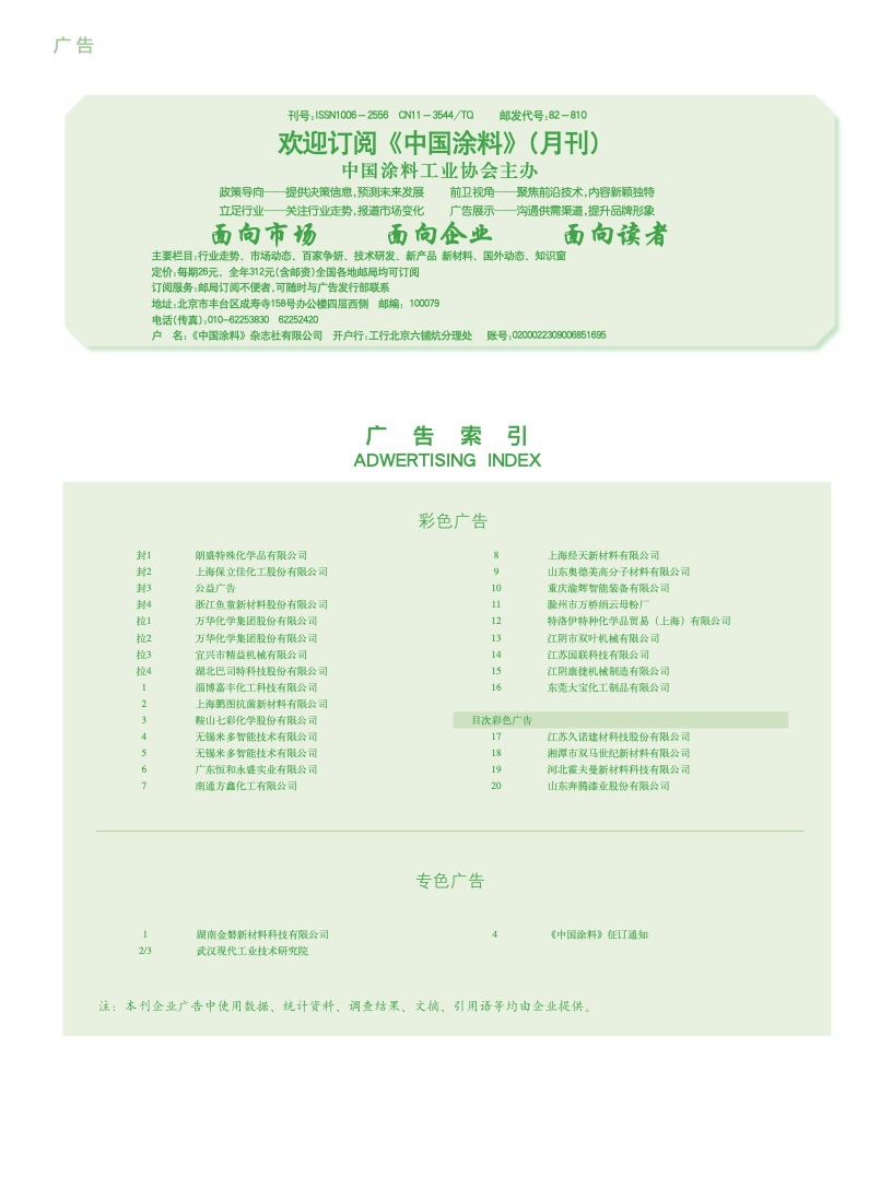 湖南金磐、武漢現(xiàn)代、《中國(guó)涂料》征訂通知