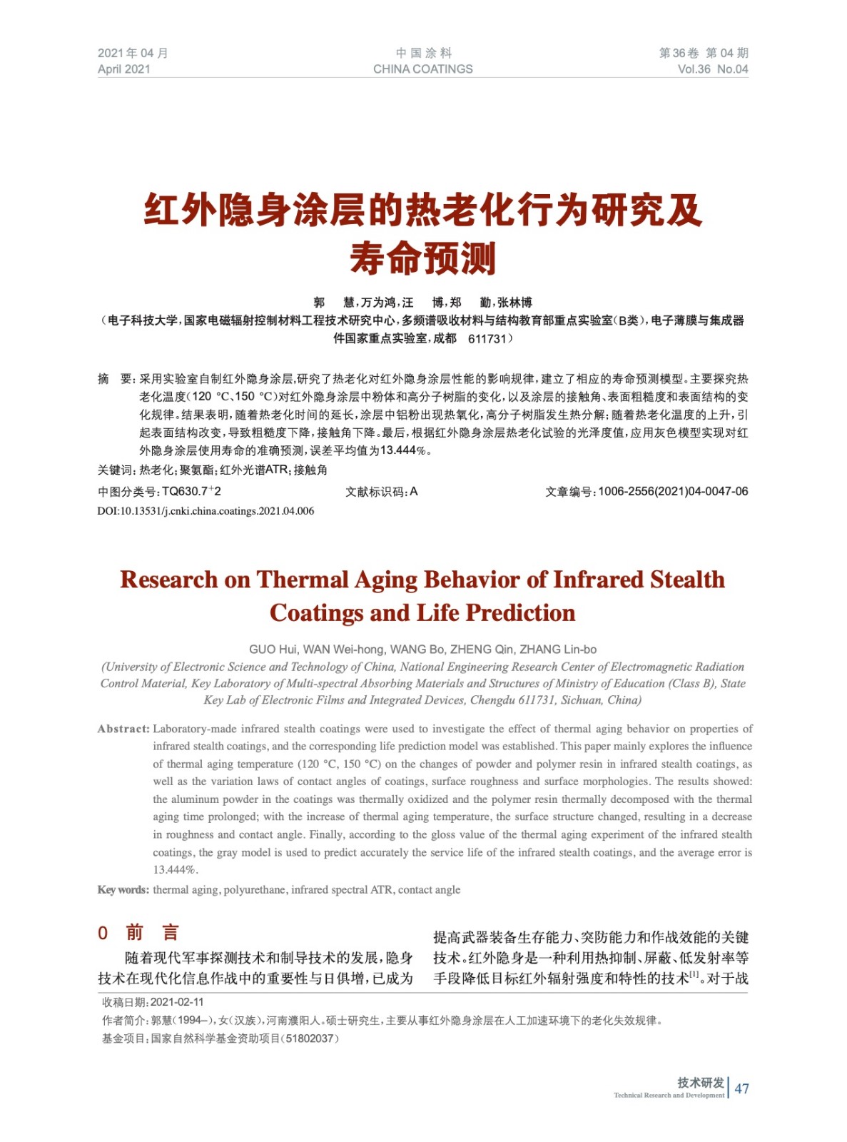 本文系作者@郭 慧,萬為鴻,汪 博,鄭 勤,張林博 授權中國涂料網發(fā)表,并經中國涂料網編輯,未經允許不得轉載,如需轉載請聯(lián)系chinacoatingnet@vip.163.com