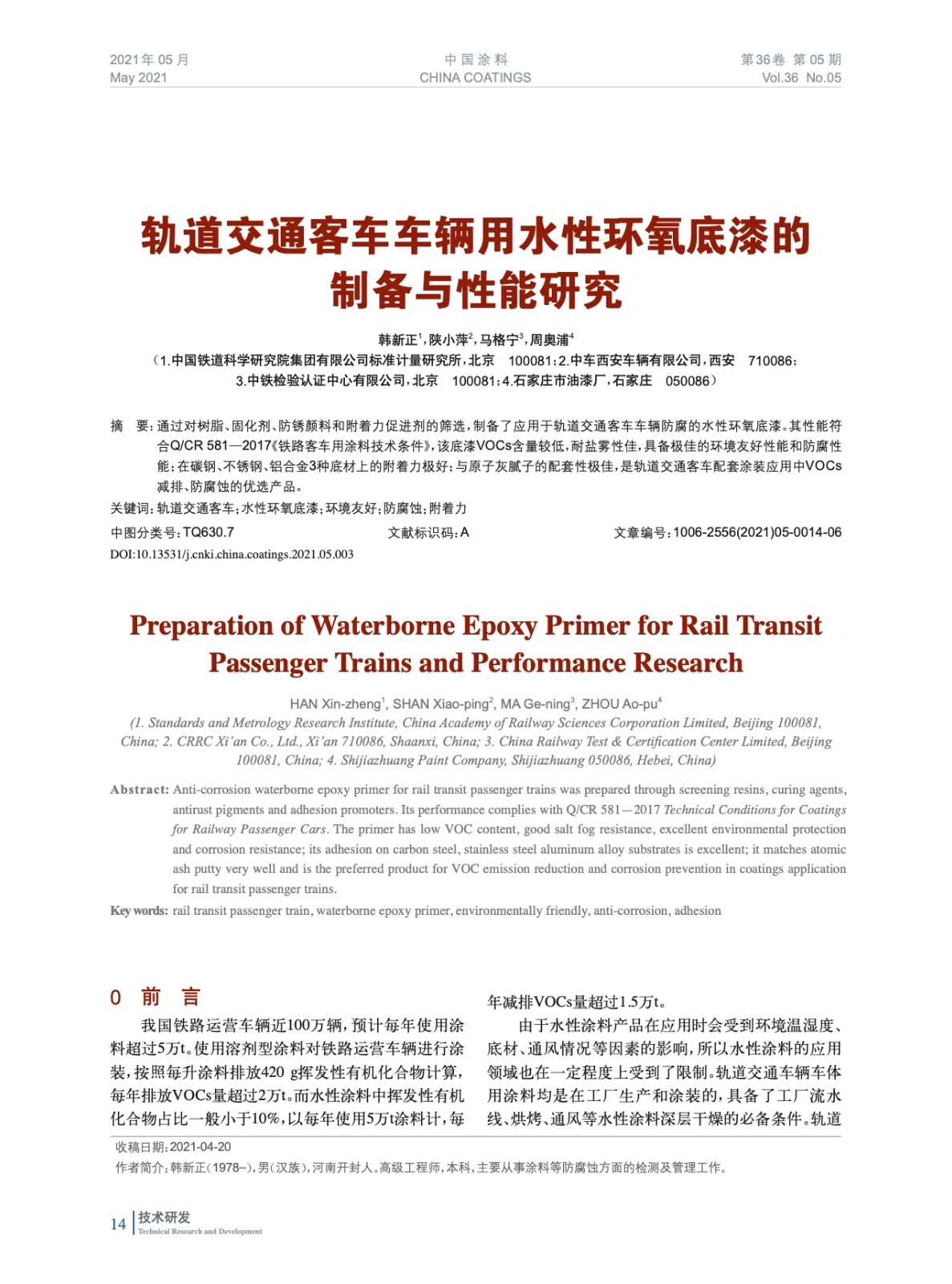 軌道交通客車車輛用水性環(huán)氧底漆的制備與性能研究