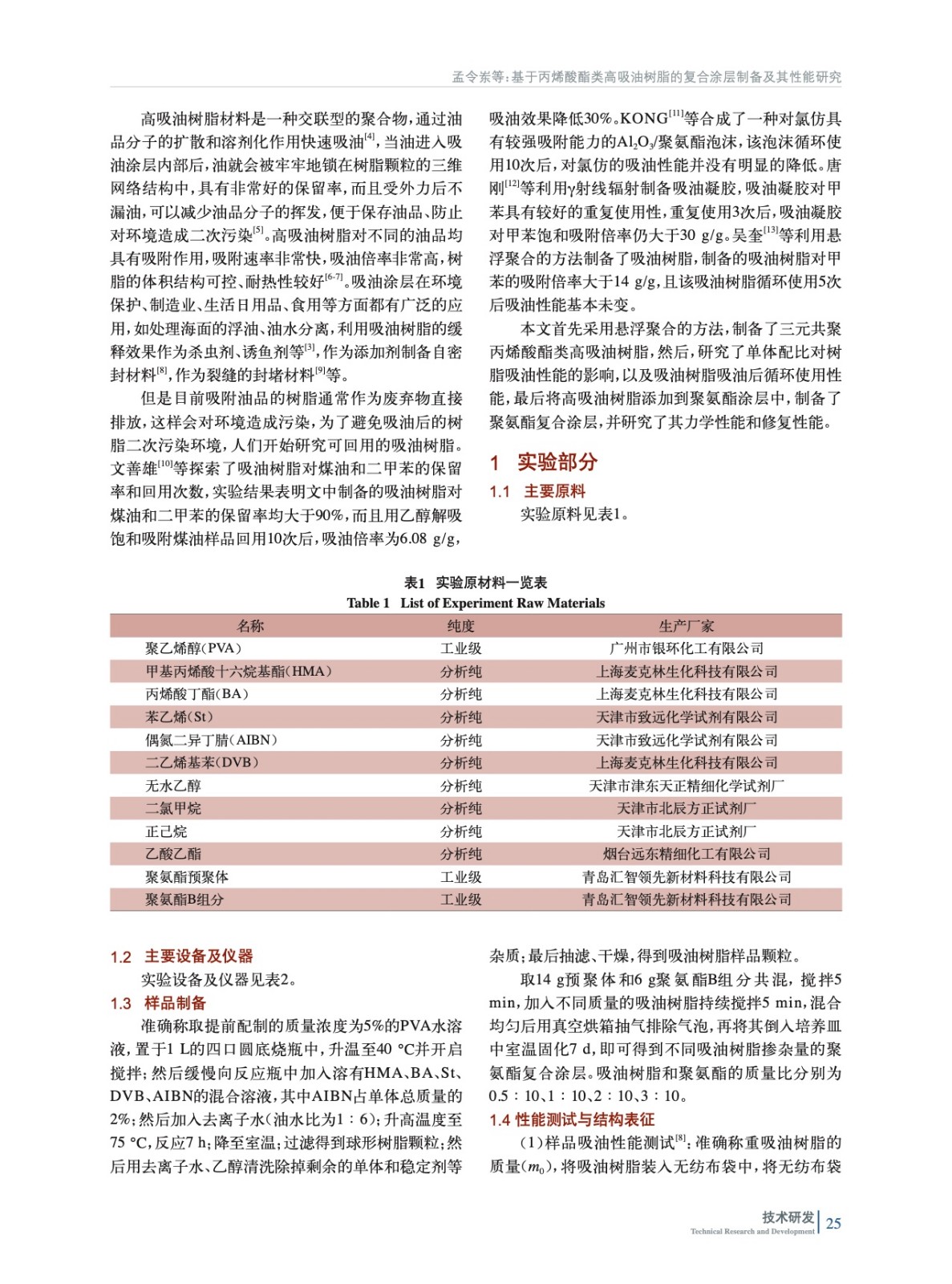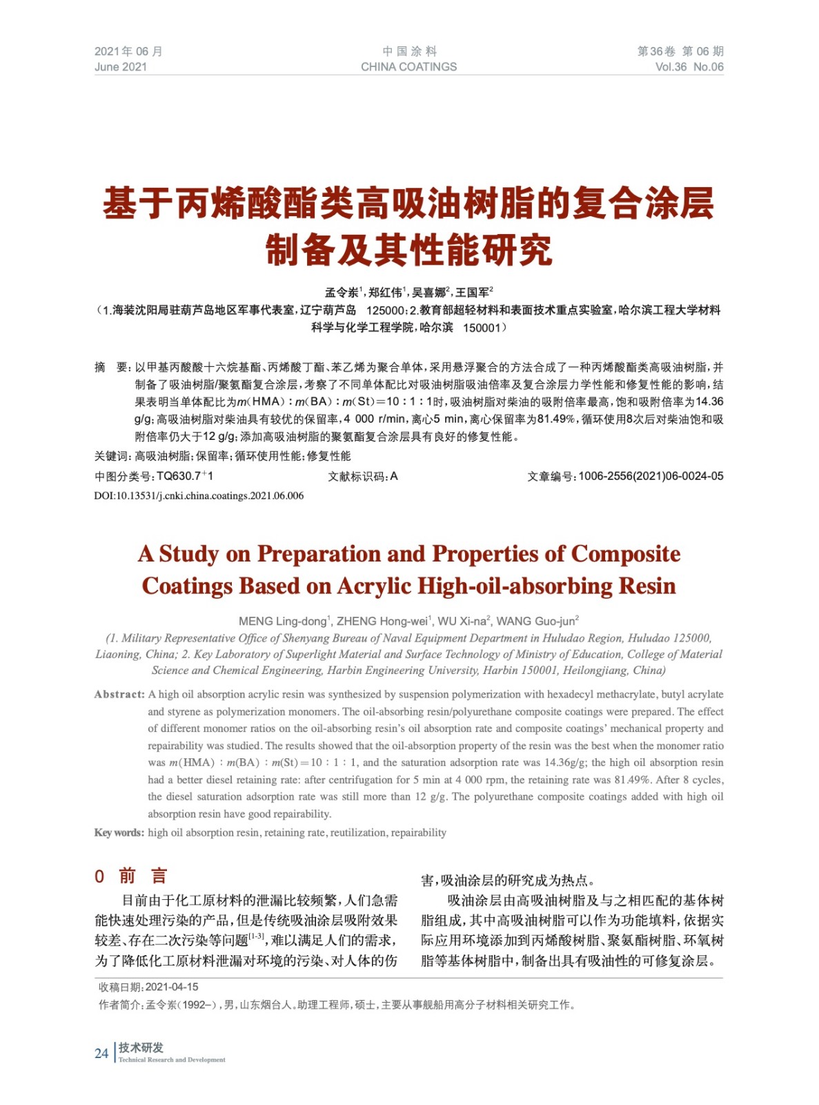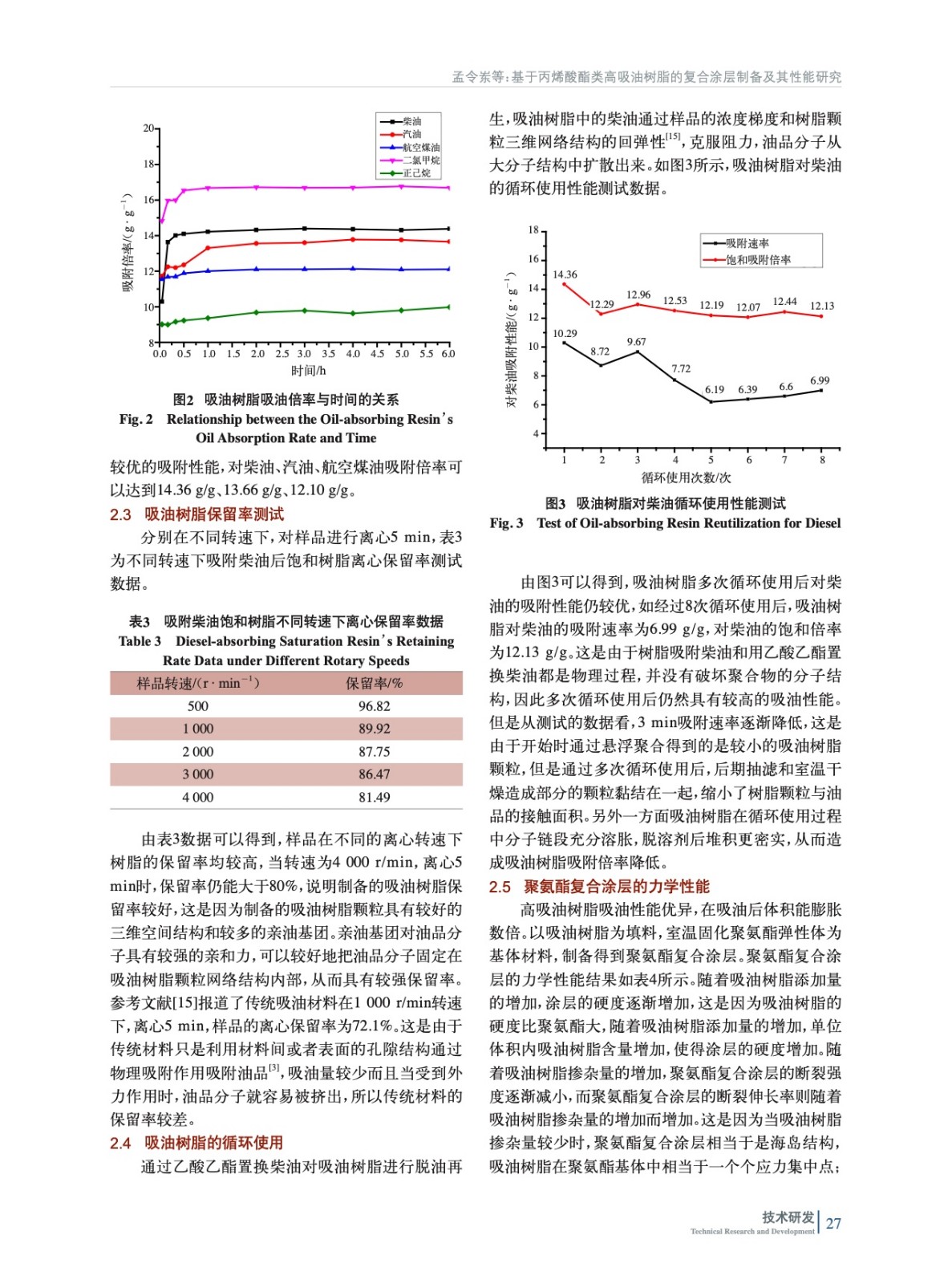 基于丙烯酸酯類高吸油樹脂的復(fù)合涂層制備及其性能研究