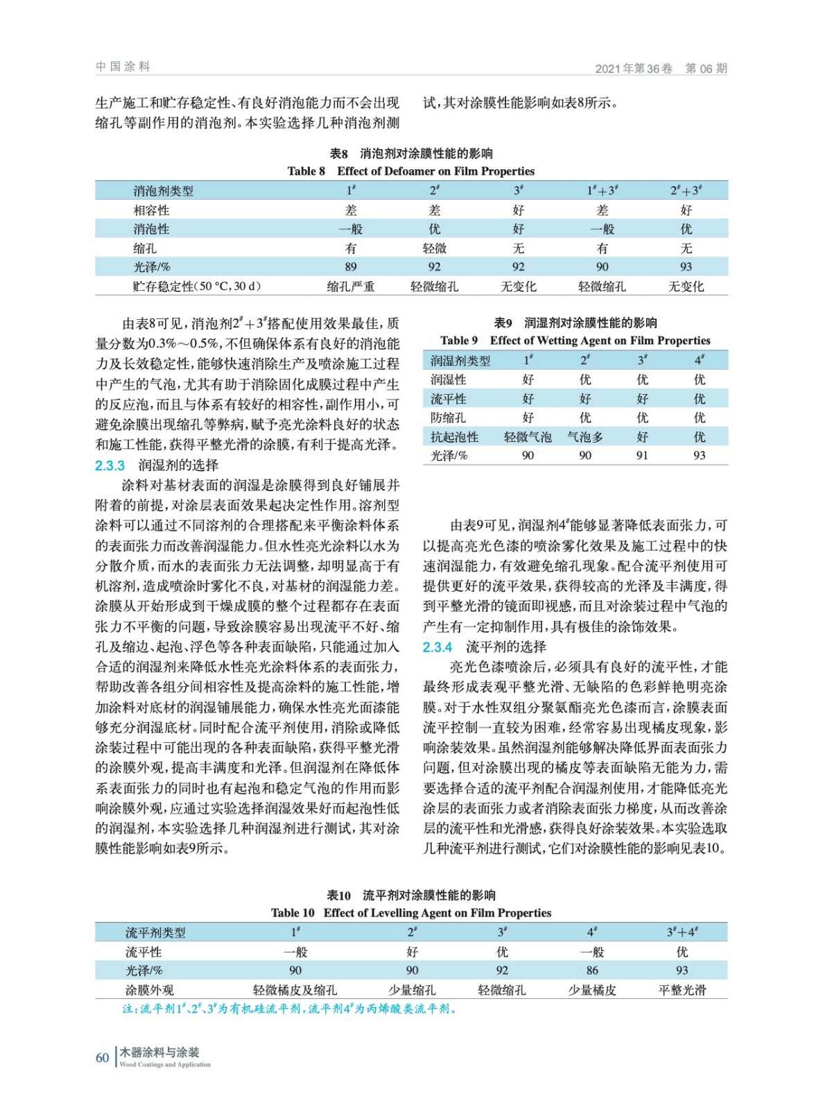 家具用高性能水性雙組分聚氨酯亮光色漆的制備及性能研究