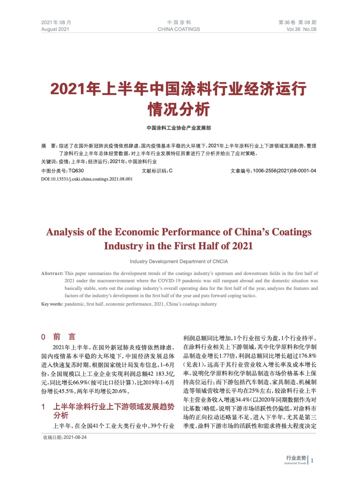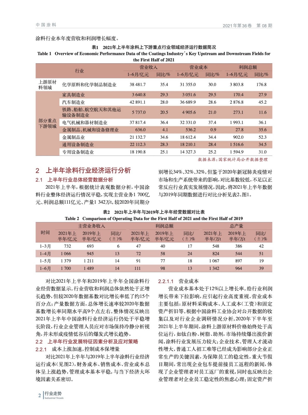 2021年上半年中國涂料行業(yè)經(jīng)濟運行情況分析