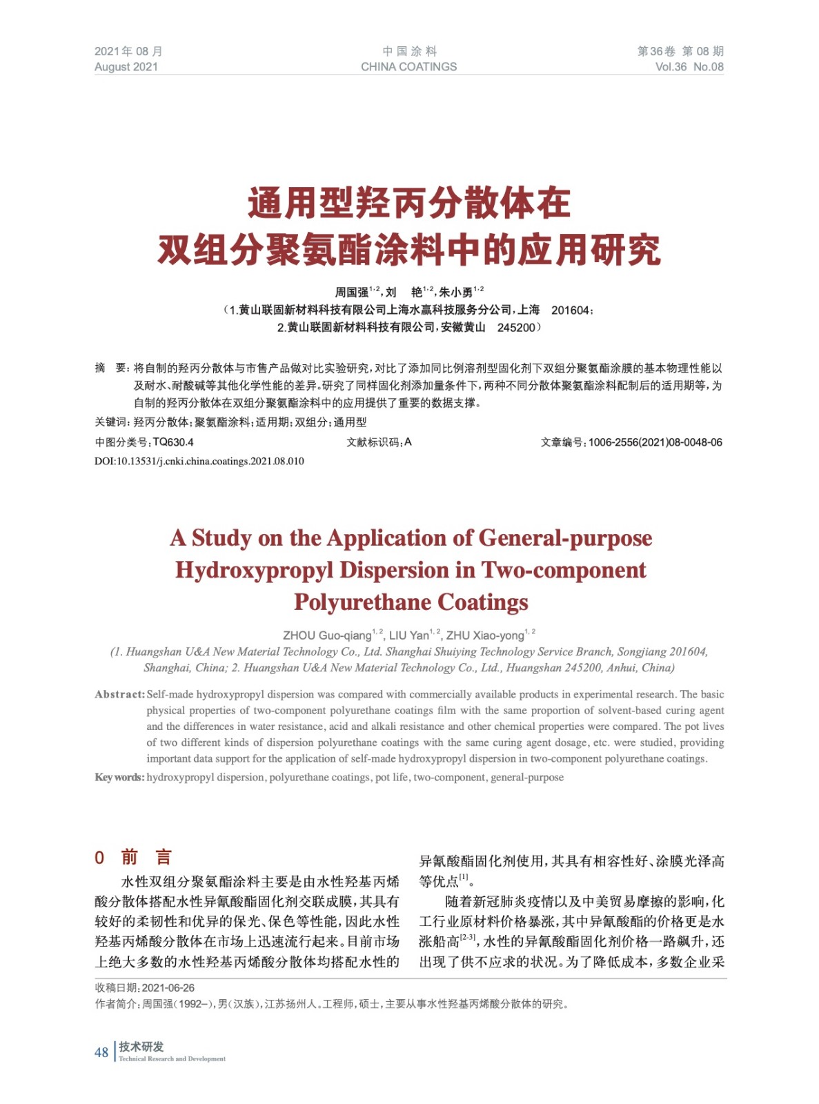 本文系作者@周國(guó)強(qiáng),劉 艷,朱小勇 授權(quán)中國(guó)涂料網(wǎng)發(fā)表,并經(jīng)中國(guó)涂料網(wǎng)編輯,未經(jīng)允許不得轉(zhuǎn)載,如需轉(zhuǎn)載請(qǐng)聯(lián)系chinacoatingnet@vip.163.com