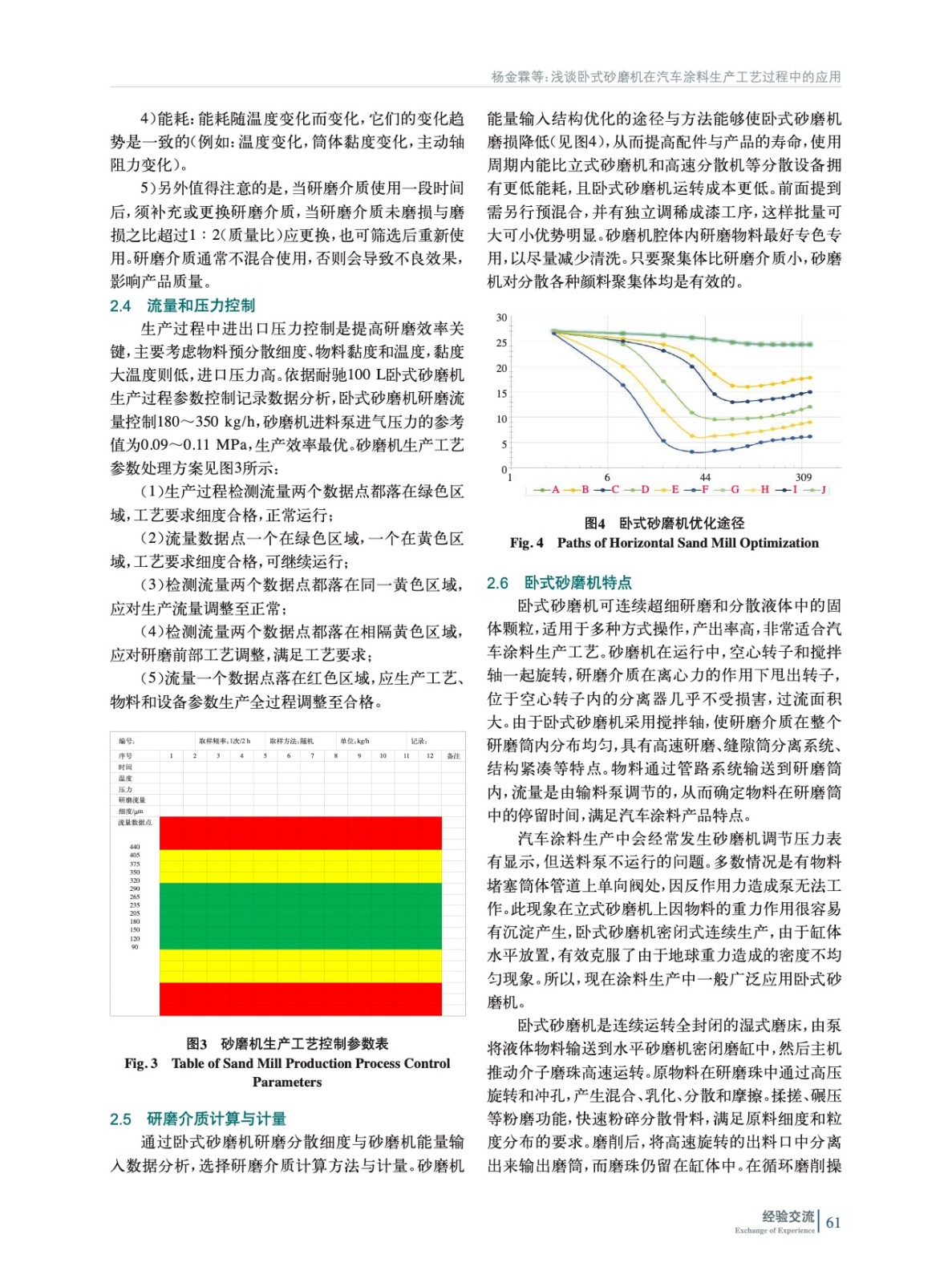 摘要:通過對(duì)汽車涂料生產(chǎn)過程中的關(guān)鍵設(shè)備——臥式砂磨機(jī)工作原理的研究,通過采用不同研磨工藝,在確保產(chǎn)品細(xì)度和外觀質(zhì)量、研磨遍數(shù)不超過工藝要求的前提下,通過考察不同研磨介質(zhì)充填量、調(diào)整物料不同進(jìn)料壓力、可變出料等因素對(duì)砂磨機(jī)研磨效率的影響,指出常見問題的排查內(nèi)容,結(jié)合數(shù)據(jù)分析以尋求出較為合理的設(shè)備工藝參數(shù),制定臥式砂磨機(jī)生產(chǎn)操作工藝規(guī)程,有效保證汽車涂料在生產(chǎn)研磨分散過程中其綜合性能達(dá)到配方設(shè)計(jì)要求。