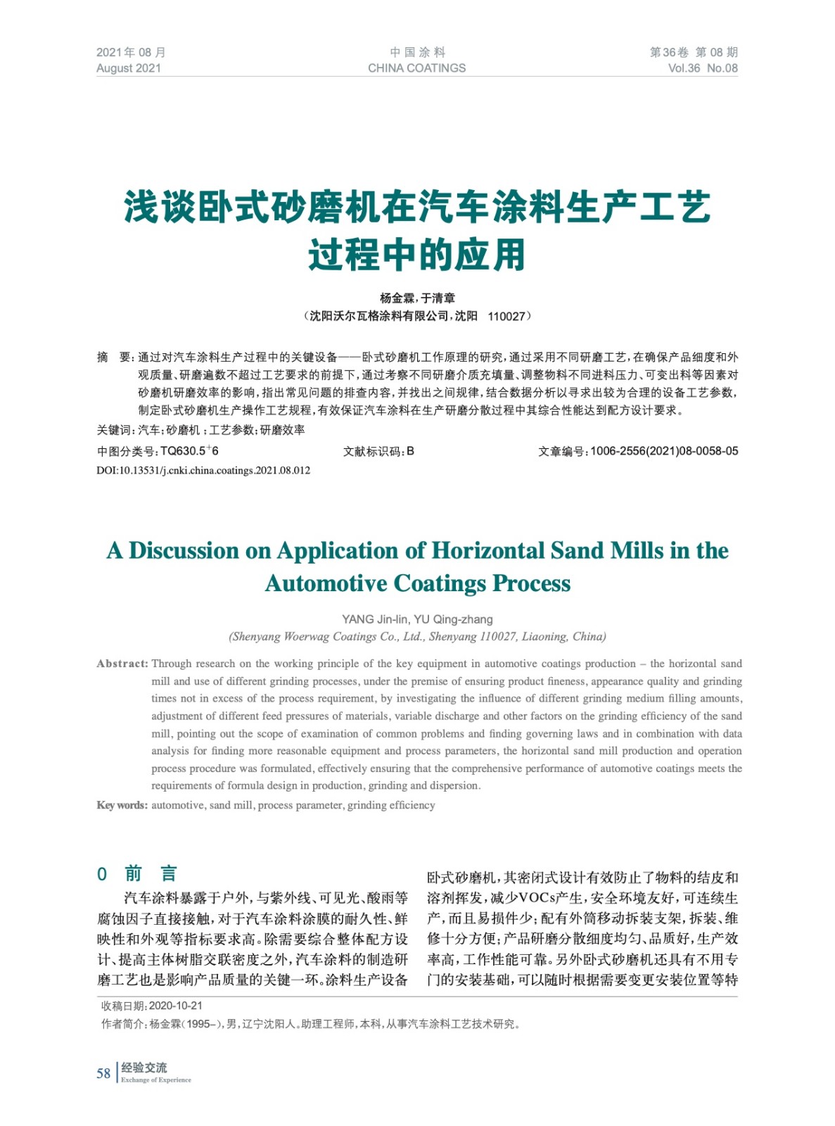 淺談臥式砂磨機(jī)在汽車涂料生產(chǎn)工藝過程中的應(yīng)用