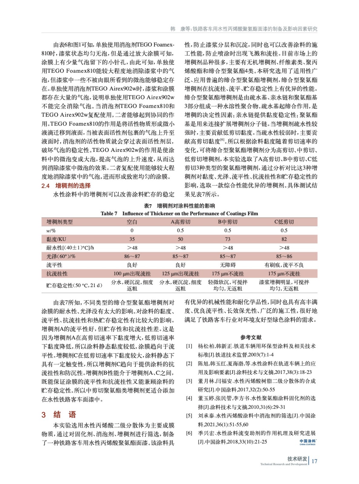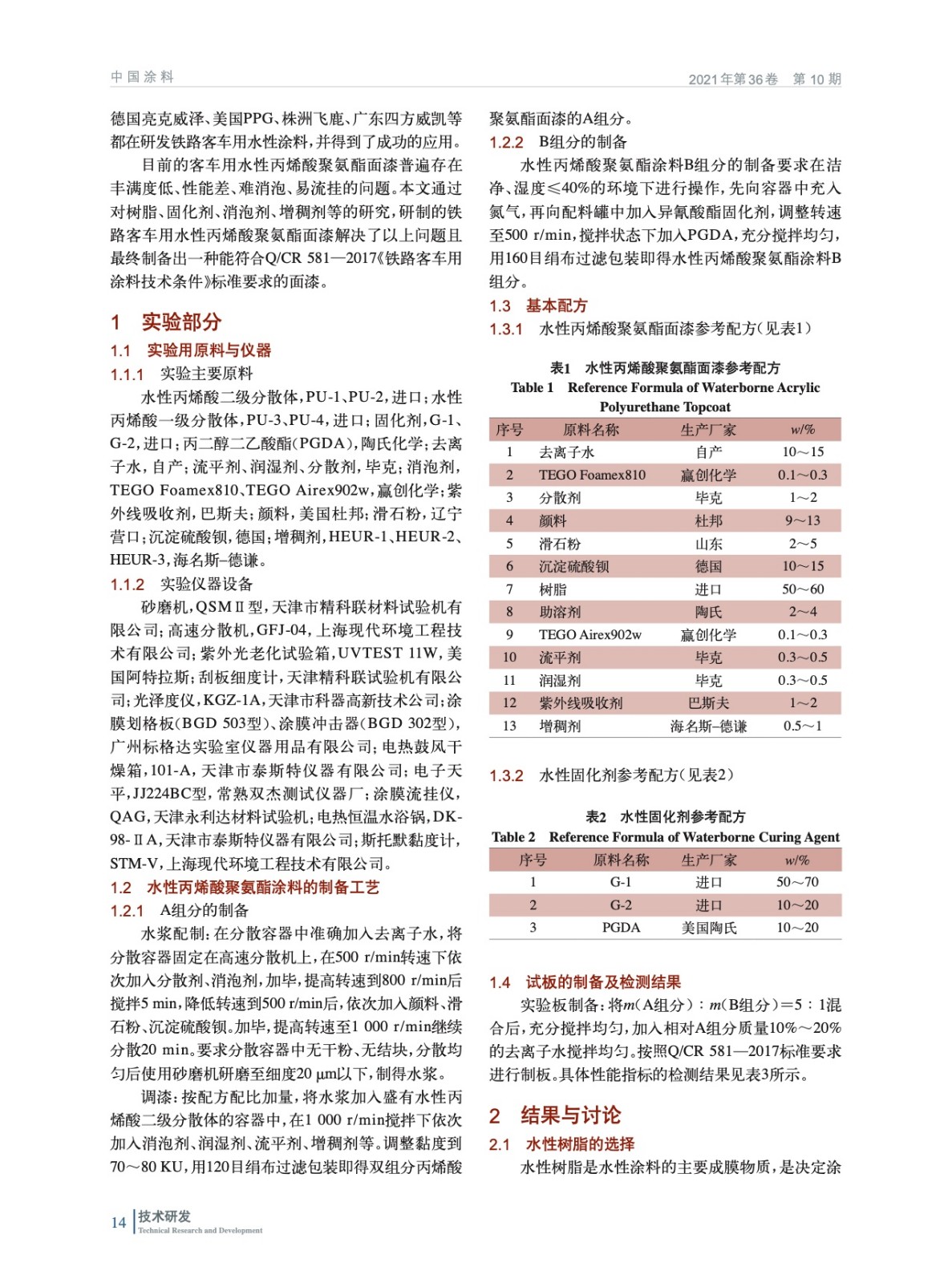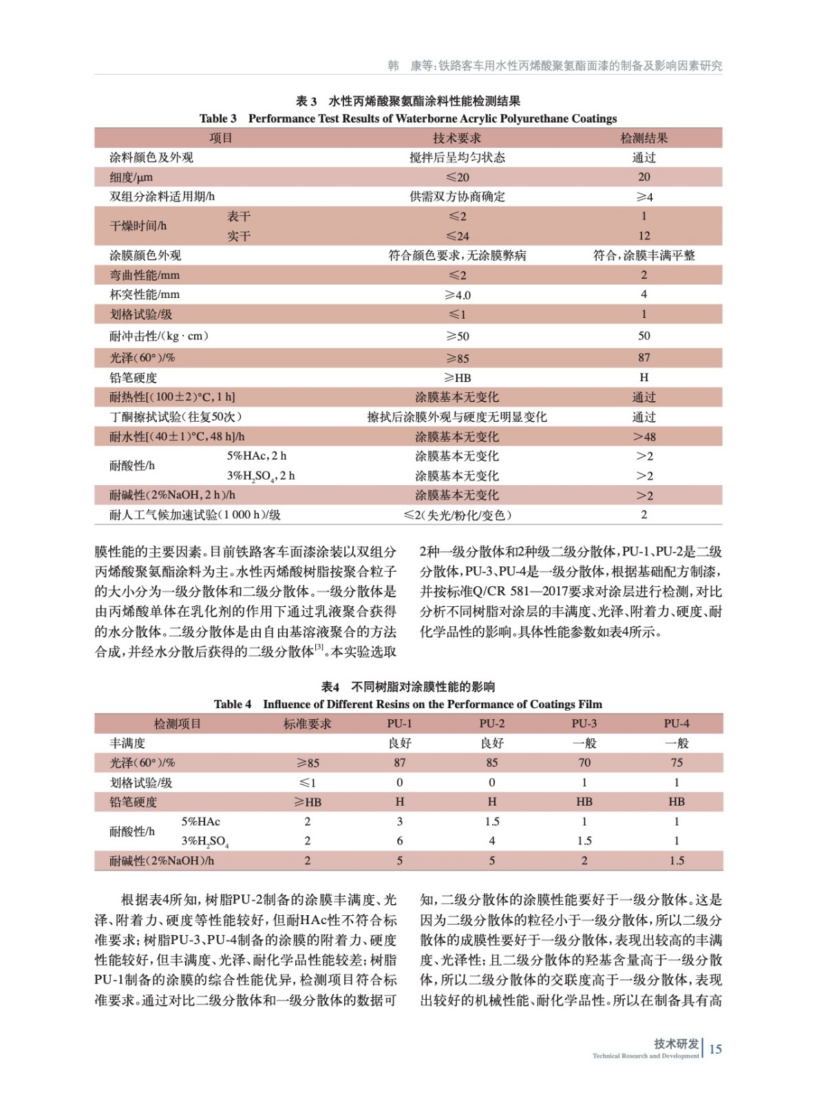鐵路客車(chē)用水性丙烯酸聚氨酯面漆的制備及影響因素研究