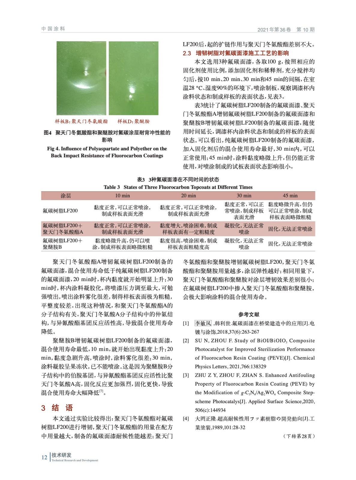 摘要:選用多種增韌樹脂,提高氟碳涂層的柔韌性,改善氟碳涂層膜厚較高時(shí)脆性過高的問題。研究過程中,分析了增韌樹脂的用量與種類對(duì)氟碳涂層柔韌性及耐候性能的影響,并簡述了添加增韌樹脂對(duì)氟碳面漆施工的影響。