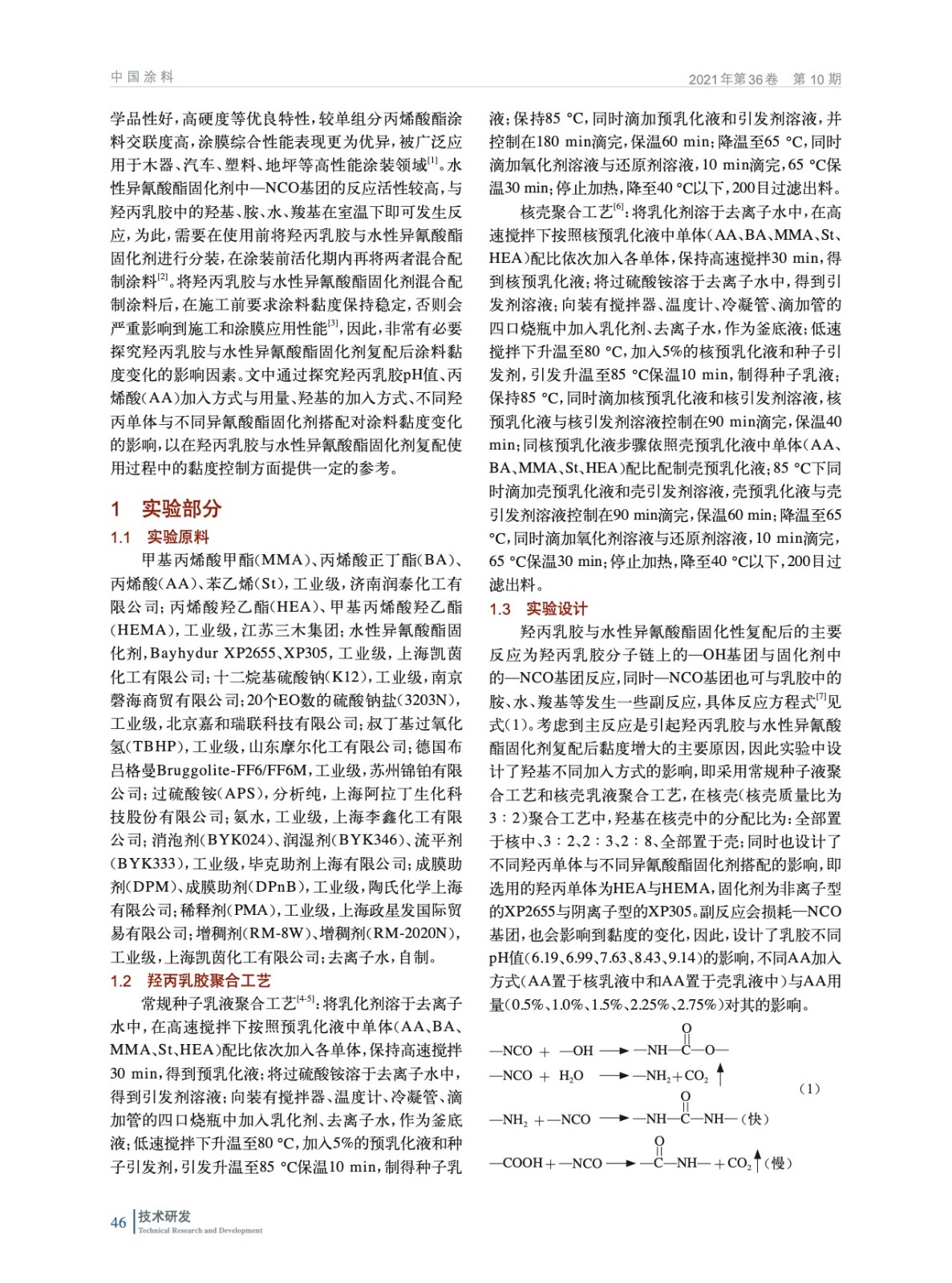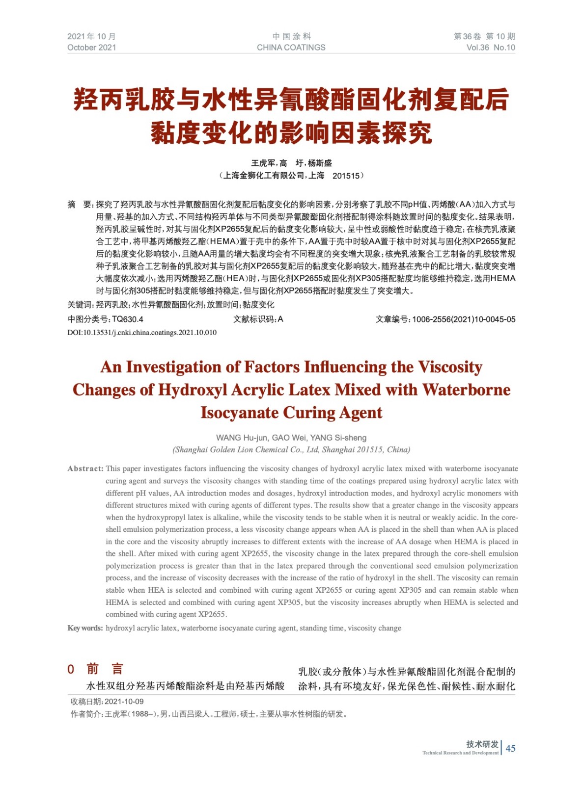 羥丙乳膠與水性異氰酸酯固化劑復(fù)配后黏度變化的影響因素探究