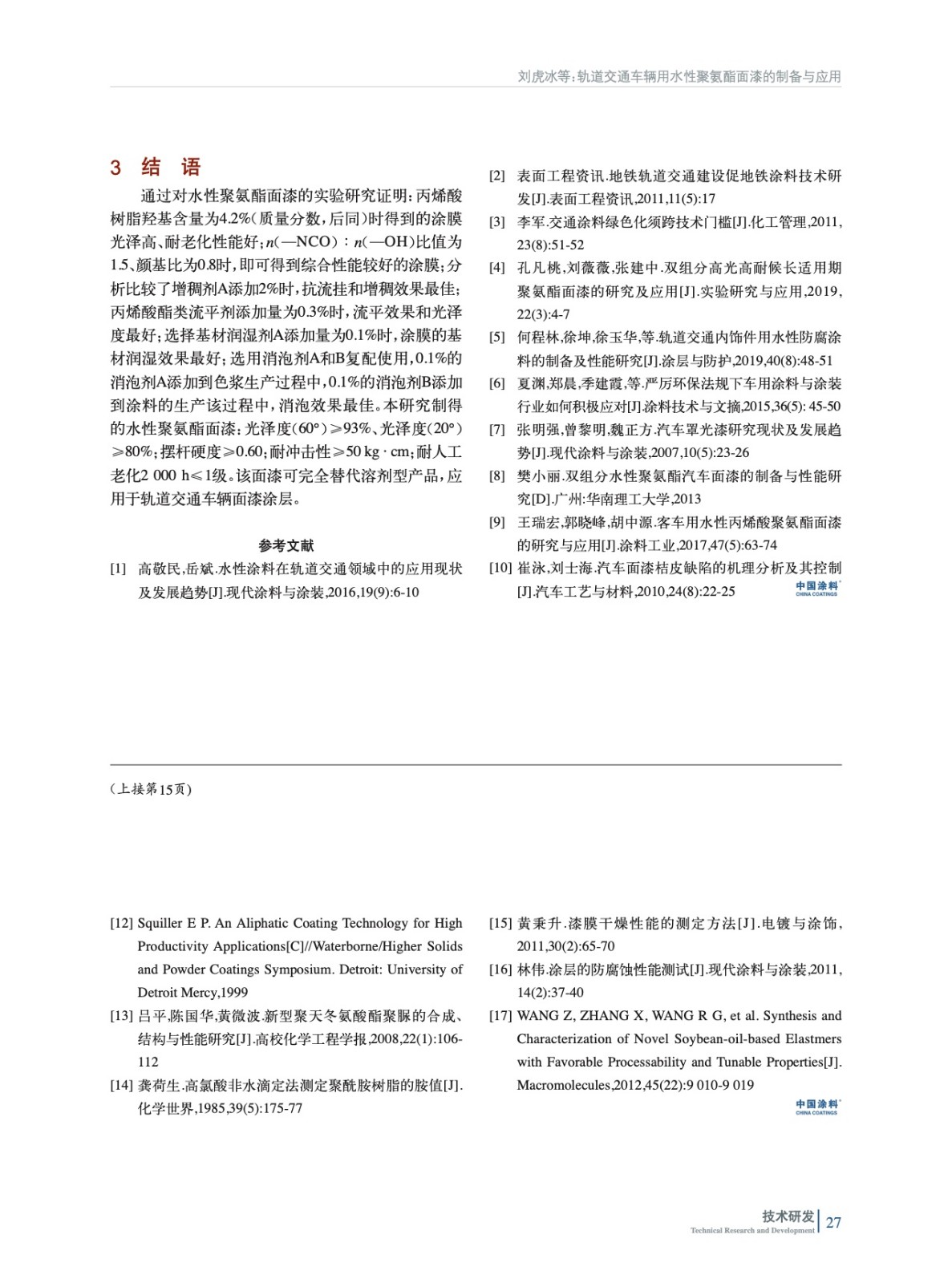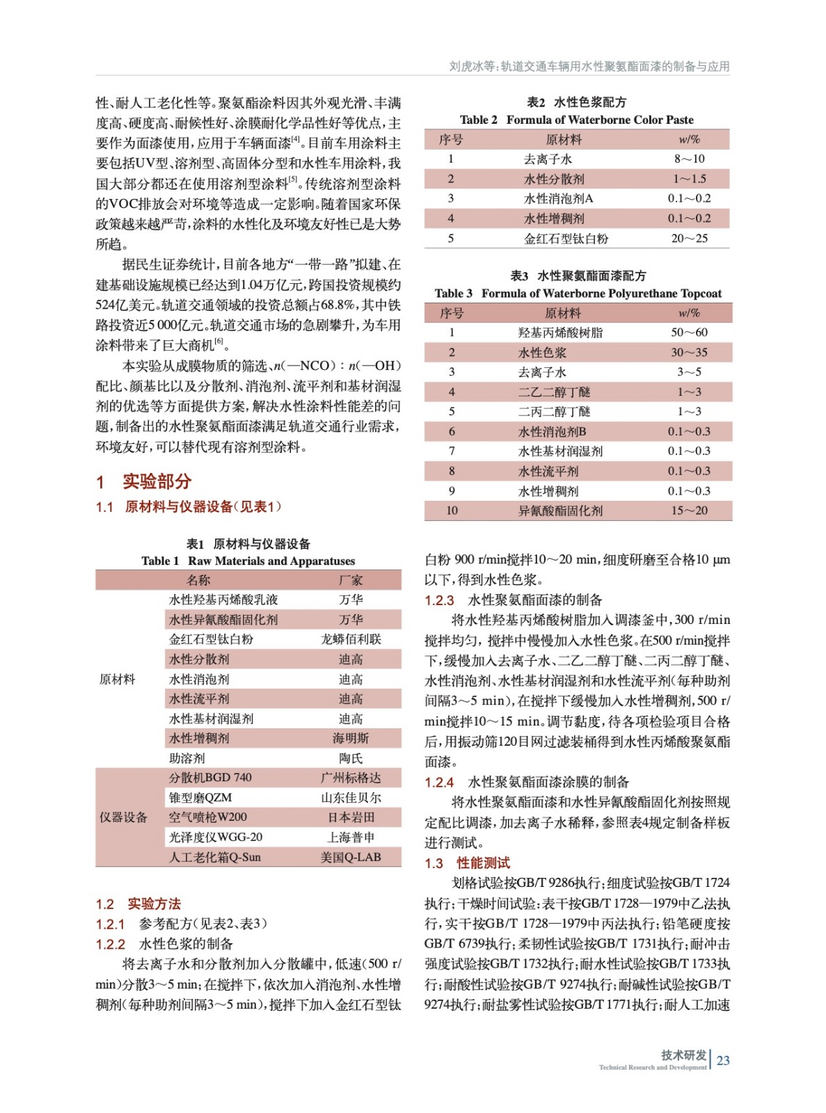 軌道交通車輛用水性聚氨酯面漆的制備與應用