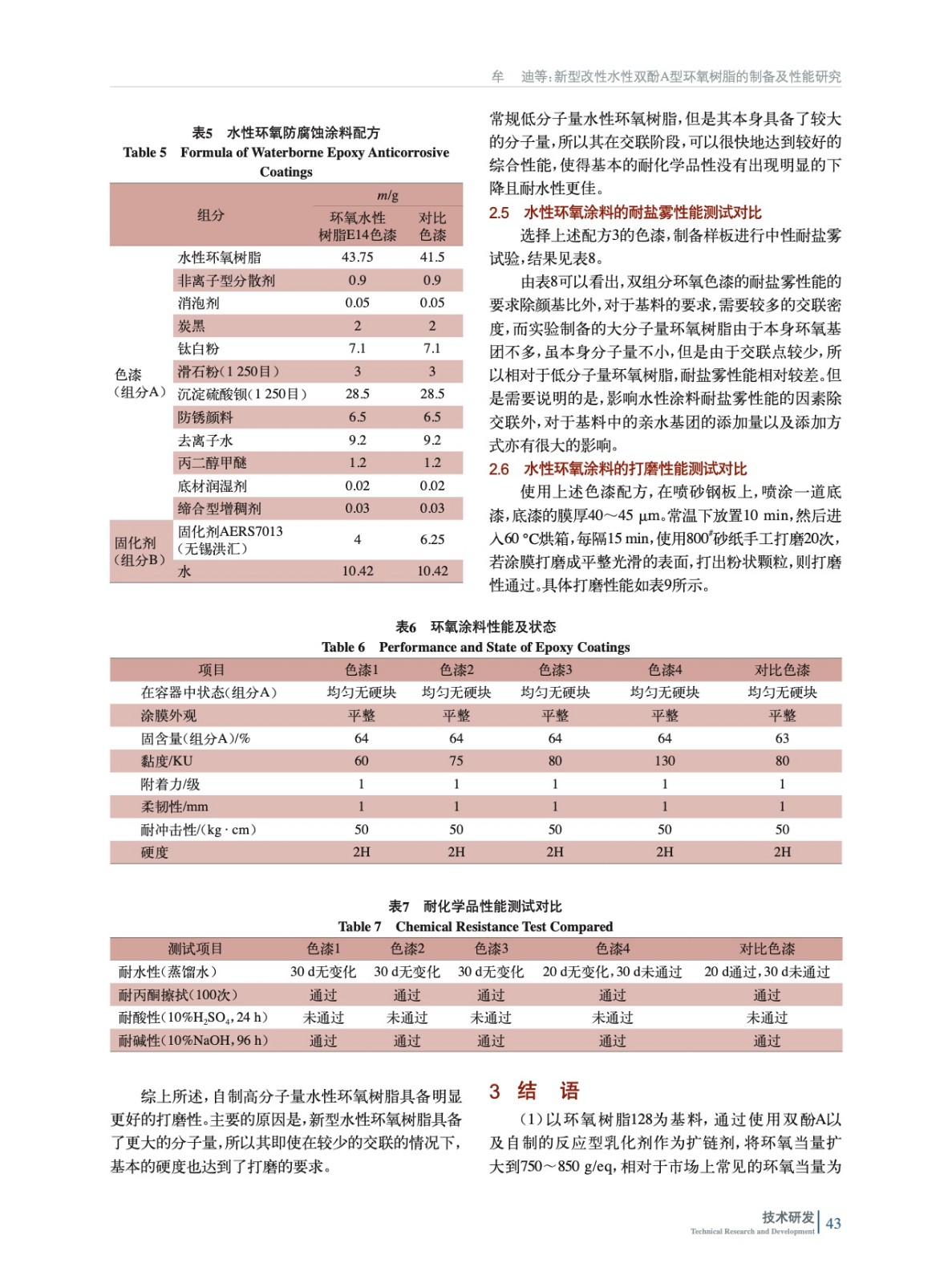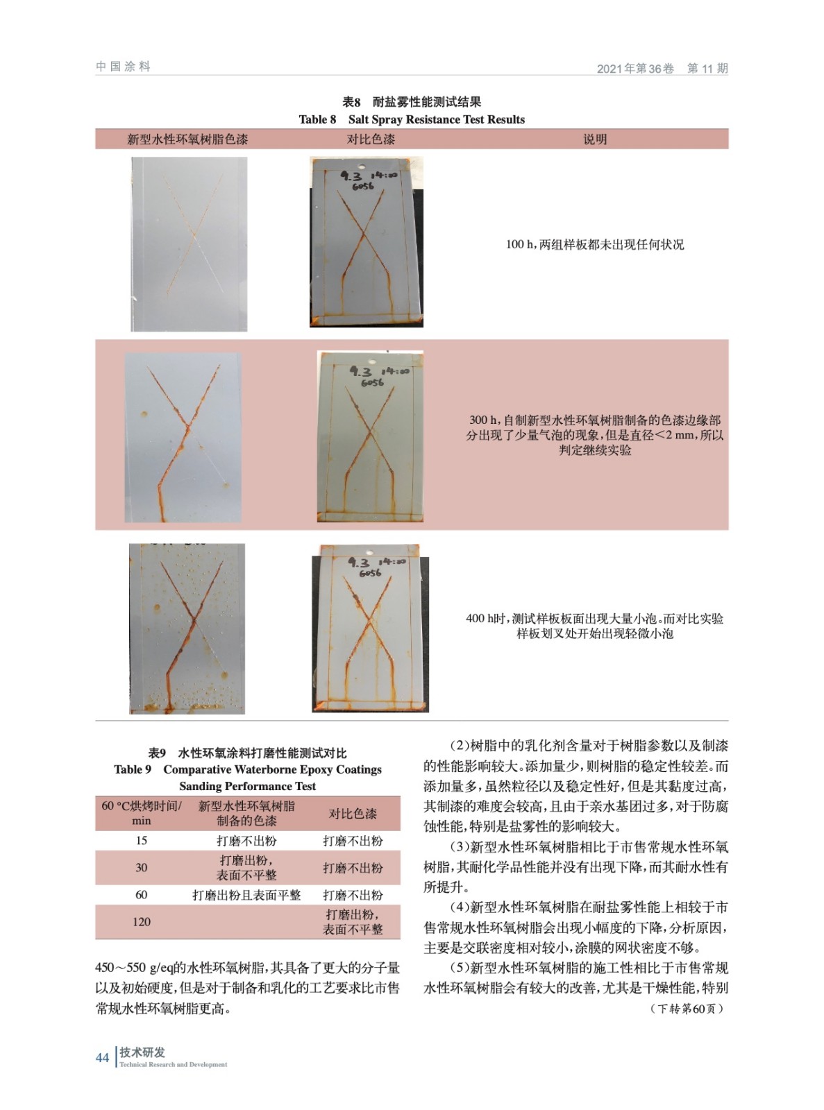 摘要:以自制反應(yīng)型表面活性劑為親水基團(tuán),加入低分子量環(huán)氧樹脂等,制備環(huán)氧當(dāng)量800 g/eq左右的環(huán)氧樹脂,并在合適的溫度下進(jìn)行水性化。與市售的水性環(huán)氧樹脂進(jìn)行對比,其具備了優(yōu)異的打磨性和耐水性,干燥性能相比之下也更加得優(yōu)異,更加適合“濕碰濕”體系。且由于可添加更少的固化劑,也具備更好的性價(jià)比。
