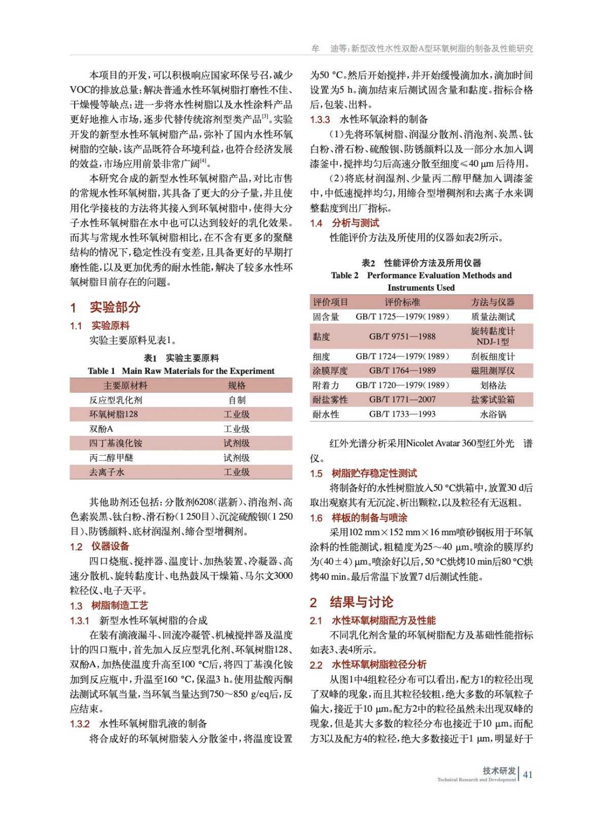 新型改性水性環(huán)氧樹脂的制備及性能研究