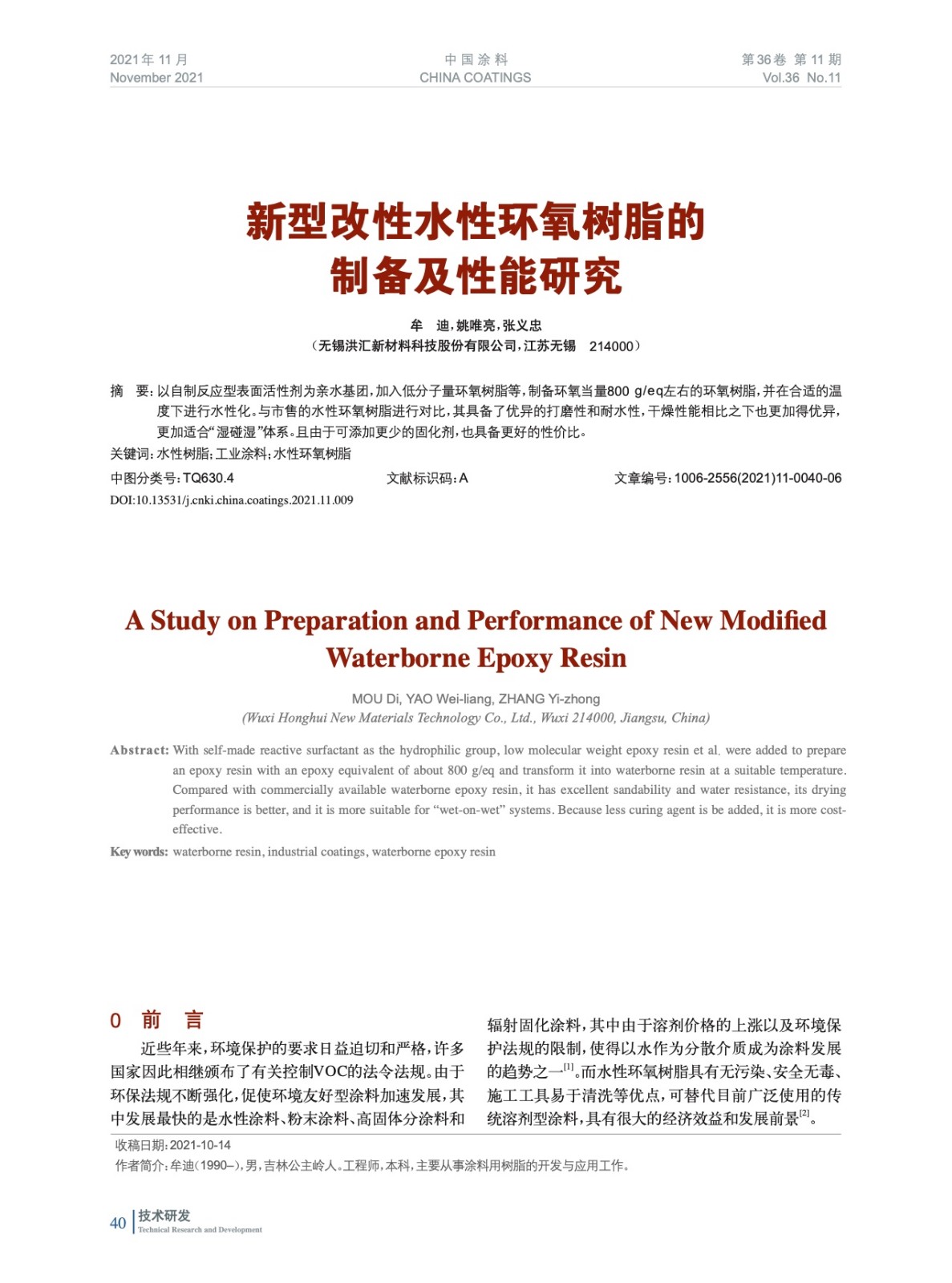 本文系作者@牟 迪,姚唯亮,張義忠 授權(quán)中國涂料網(wǎng)發(fā)表,并經(jīng)中國涂料網(wǎng)編輯,未經(jīng)允許不得轉(zhuǎn)載,如需轉(zhuǎn)載請聯(lián)系chinacoatingnet@vip.163.com