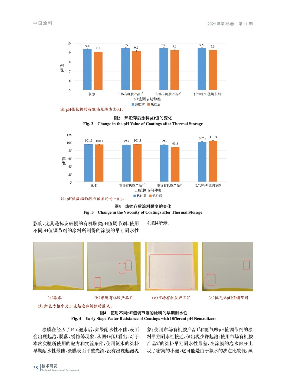 摘要:將低氣味pH值調(diào)節(jié)劑應(yīng)用于水性丙烯酸工業(yè)涂料配方中,并與市場(chǎng)上常見的pH值調(diào)節(jié)劑進(jìn)行了比較。結(jié)果表明,幾種pH值調(diào)節(jié)劑的中和效率差異不大;熱貯存20 d后,對(duì)于涂料pH值穩(wěn)定性的影響差異不明顯,但使用該低氣味pH值調(diào)節(jié)劑的涂料的黏度比較高,可以減少配方中增稠劑的使用;使用該低氣味pH值調(diào)節(jié)劑的涂料早期耐水性和耐鹽霧性與使用市場(chǎng)有機(jī)胺產(chǎn)品1#的涂料接近,比使用市場(chǎng)有機(jī)胺產(chǎn)品2#的涂料優(yōu)異。