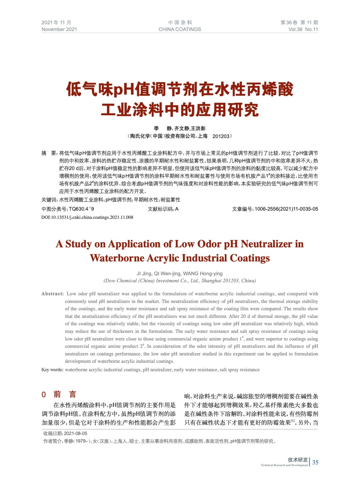 本文系作者@季 靜,齊文靜,王洪影 授權(quán)中國(guó)涂料網(wǎng)發(fā)表,并經(jīng)中國(guó)涂料網(wǎng)編輯,未經(jīng)允許不得轉(zhuǎn)載,如需轉(zhuǎn)載請(qǐng)聯(lián)系chinacoatingnet@vip.163.com