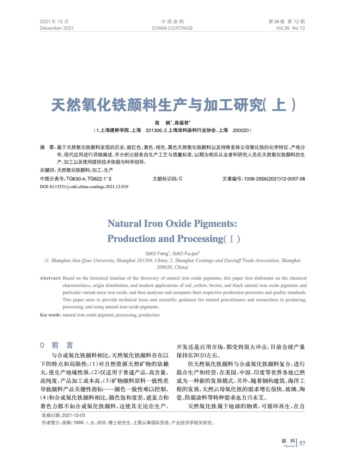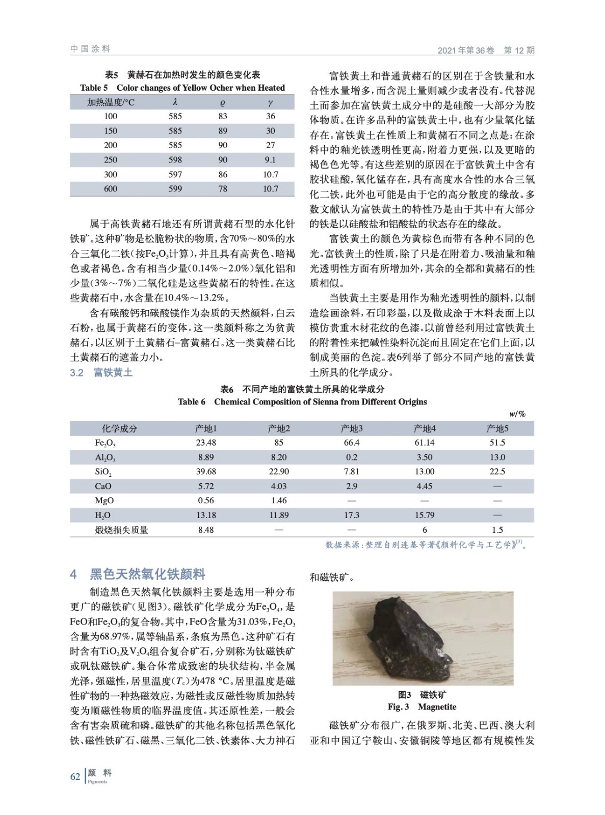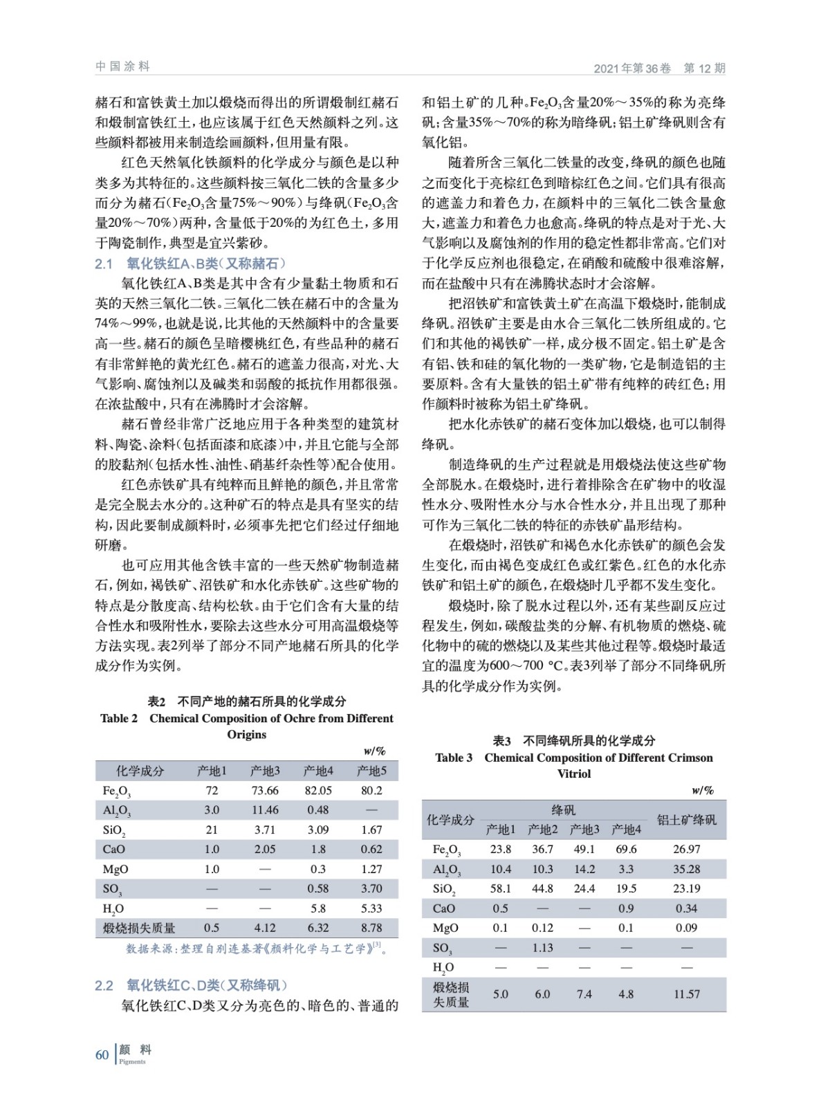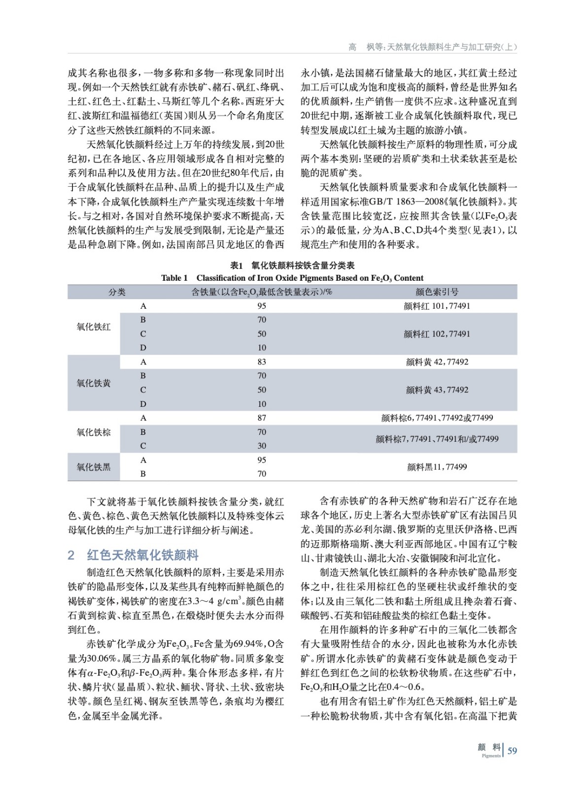 摘要:基于天然氧化鐵顏料發(fā)現(xiàn)的歷史,就紅色、黃色、棕色、黑色天然氧化鐵顏料以及特殊變體云母氧化鐵的化學特征、產(chǎn)地分布、現(xiàn)代應用進行詳細闡述,并分析比較各自生產(chǎn)工藝與質(zhì)量標準,以期為相關(guān)從業(yè)者和研究人員在天然氧化鐵顏料的生產(chǎn)、加工以及使用提供技術(shù)依據(jù)與科學指導。