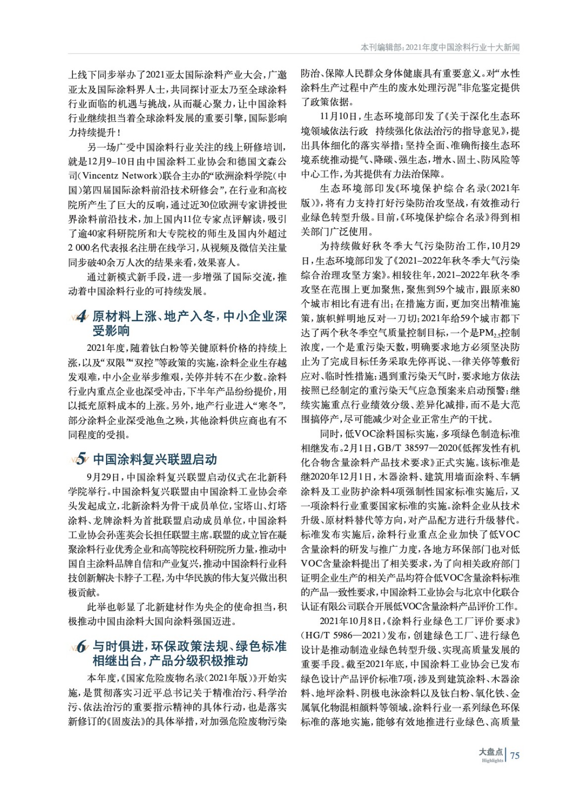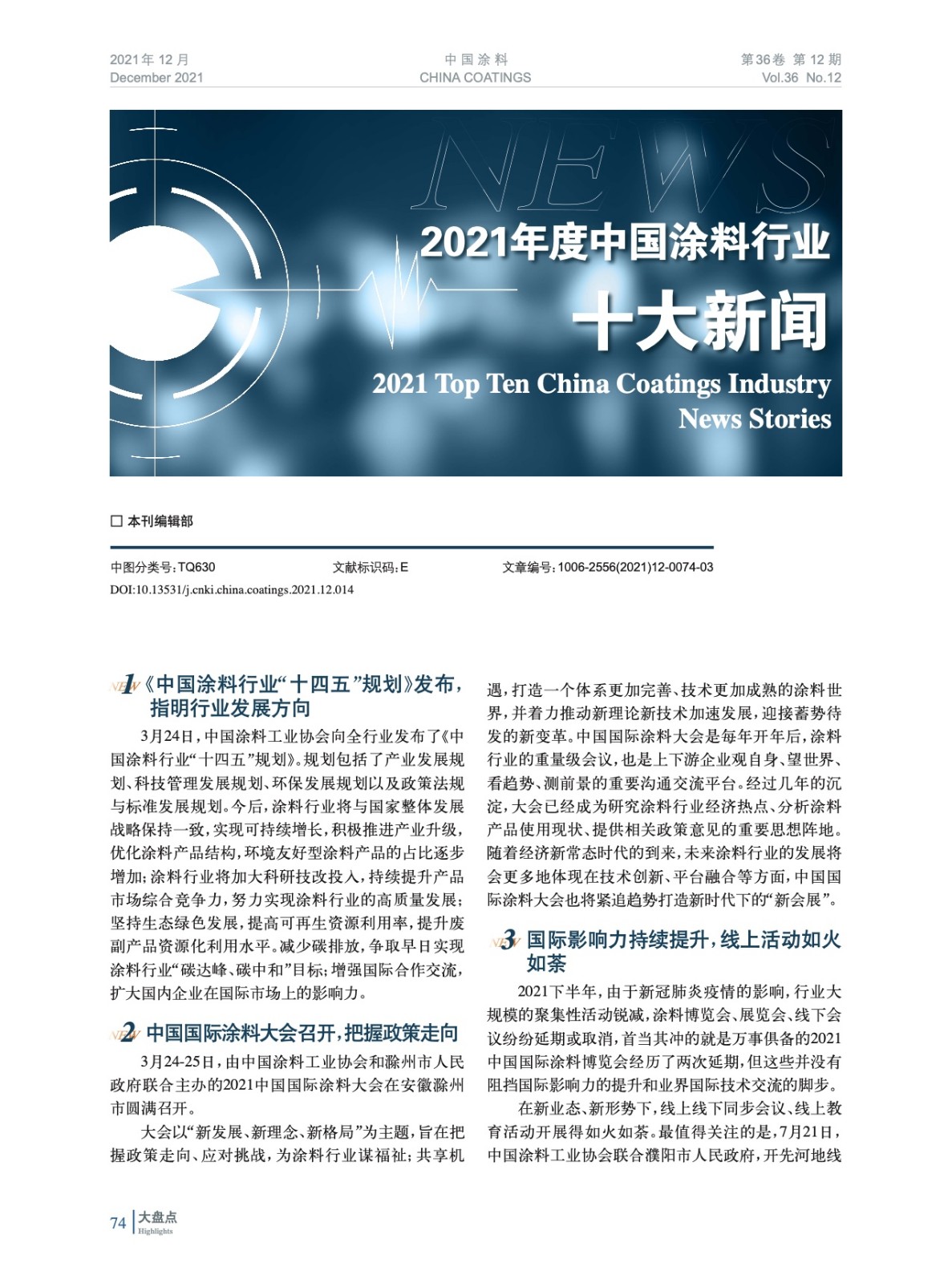2021年度中國(guó)涂料行業(yè)十大新聞