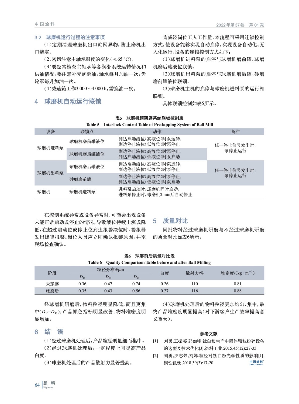 摘要:研究基于傳統(tǒng)鈦白粉雷蒙粉碎生產(chǎn)線的缺點(diǎn),通過粉碎理論研究及計(jì)算,設(shè)計(jì)了一套鈦白粉生產(chǎn)線應(yīng)用球磨機(jī)裝置,經(jīng)實(shí)驗(yàn)證實(shí),可有效改善粉碎后物料球形狀態(tài),優(yōu)化包膜效果,提高鈦白粉顏色質(zhì)量及堆密度,可有效提高下游客戶的生產(chǎn)效率。