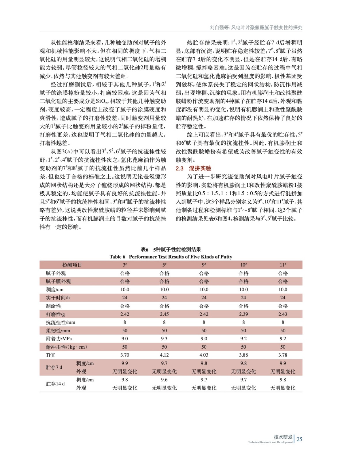 風(fēng)電葉片聚氨酯膩子觸變性的探究