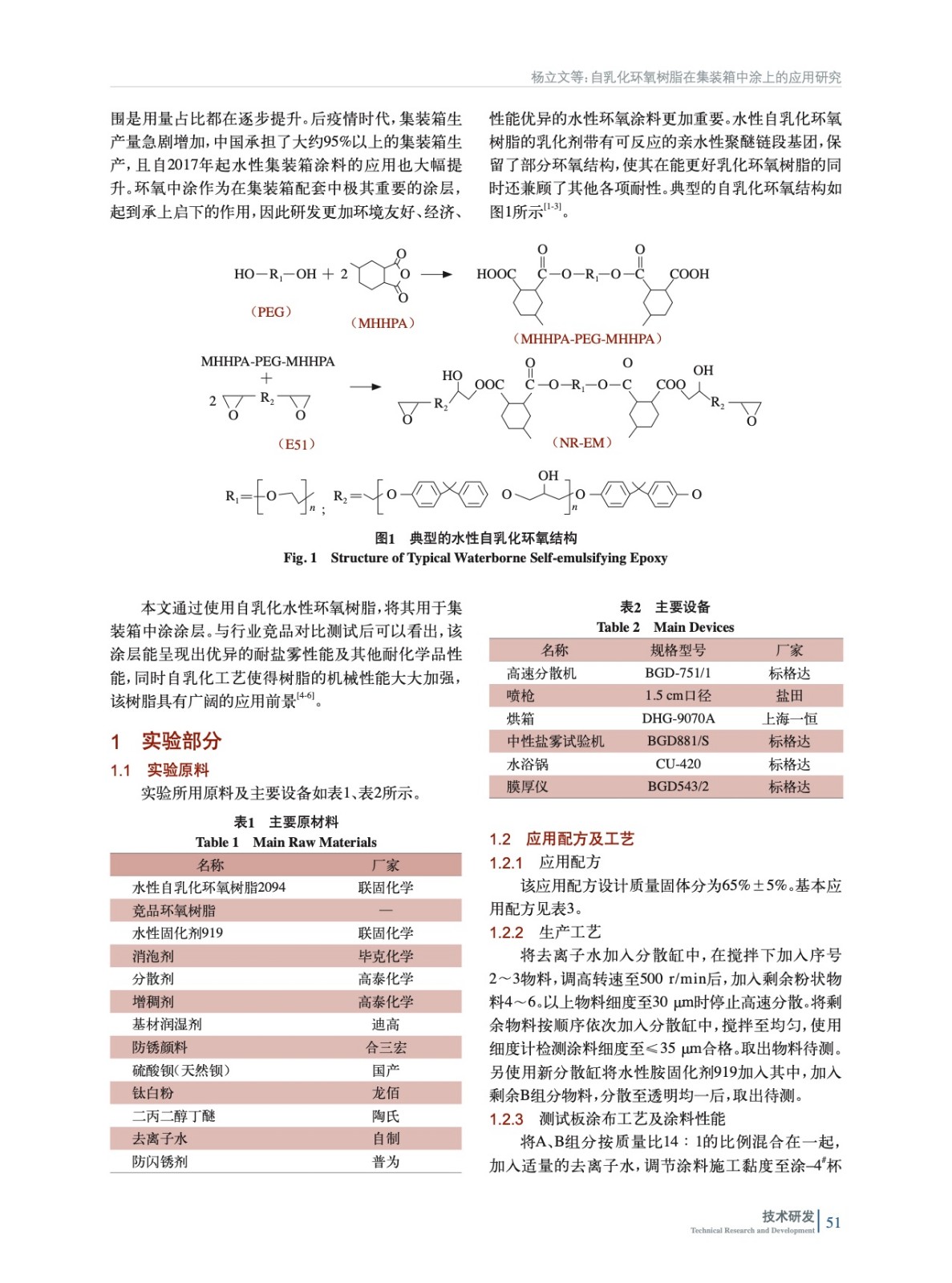 摘要:通過合成自乳化體系的水性環(huán)氧樹脂,并將該自乳化體系的水性環(huán)氧樹脂與市售的水性環(huán)氧樹脂在集裝箱冷箱中涂領域進行對比測試,分別對比測試不同水性環(huán)氧樹脂與固化劑組合下的防腐性能、耐水、耐化學介質,以及施工性、活化期等性能。通過測試可以看出本實驗合成的水性自乳化水性環(huán)氧樹脂及配套固化劑,能滿足集裝箱冷箱中涂的各項性能要求,性能優(yōu)于市售的水性環(huán)氧樹脂。