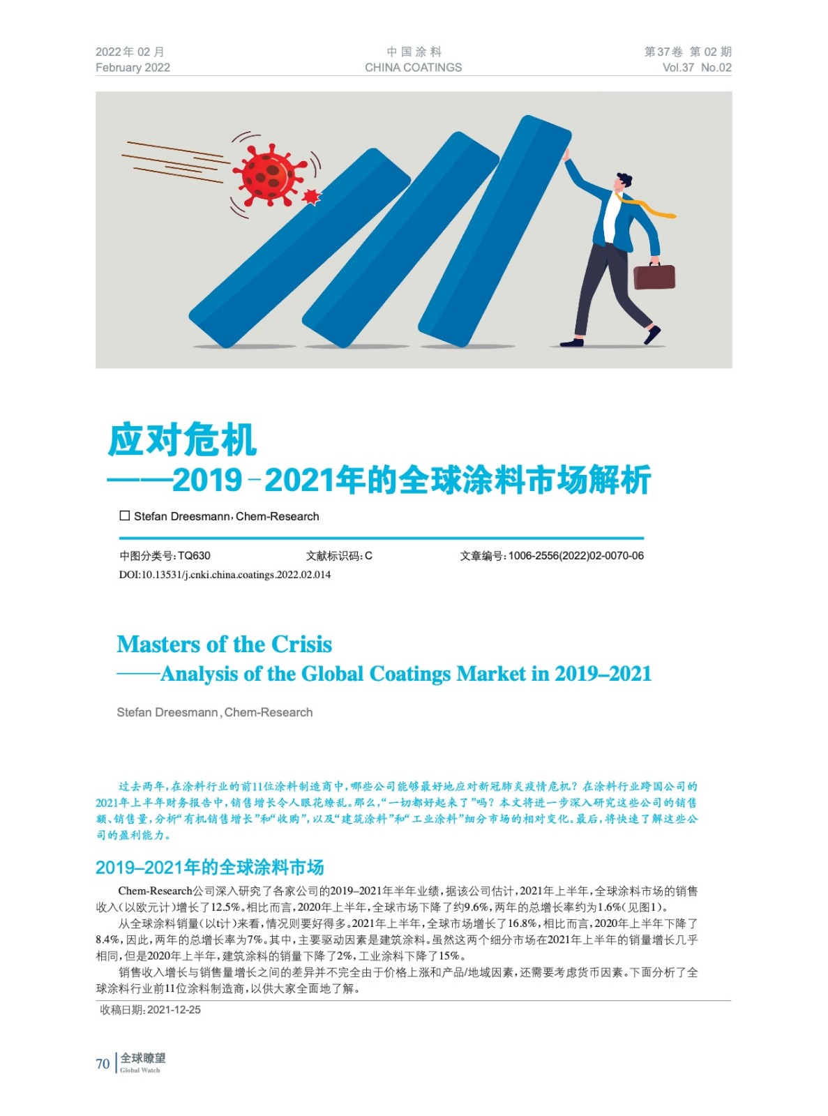 應(yīng)對危機——2019–2021年的全球涂料市場解析