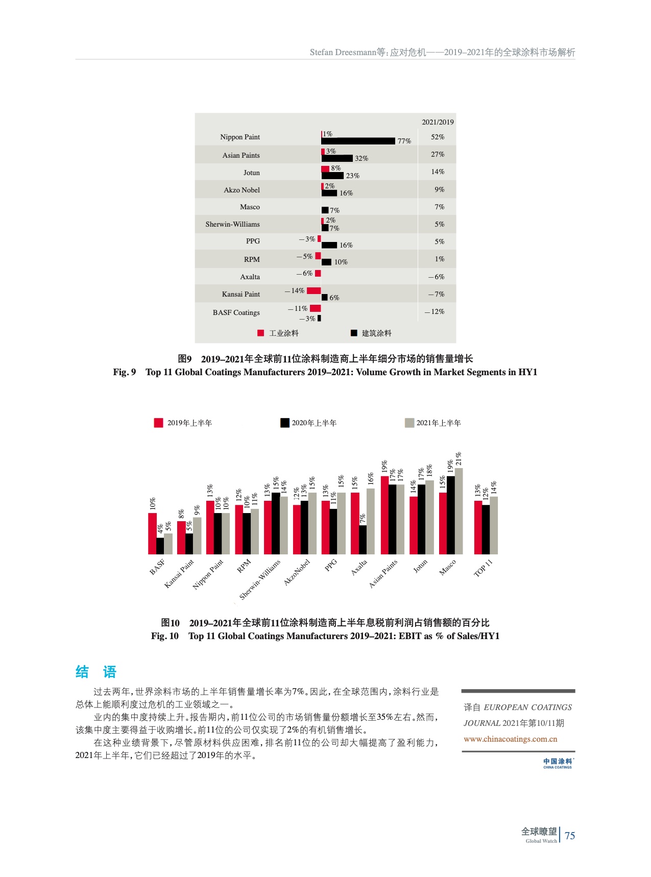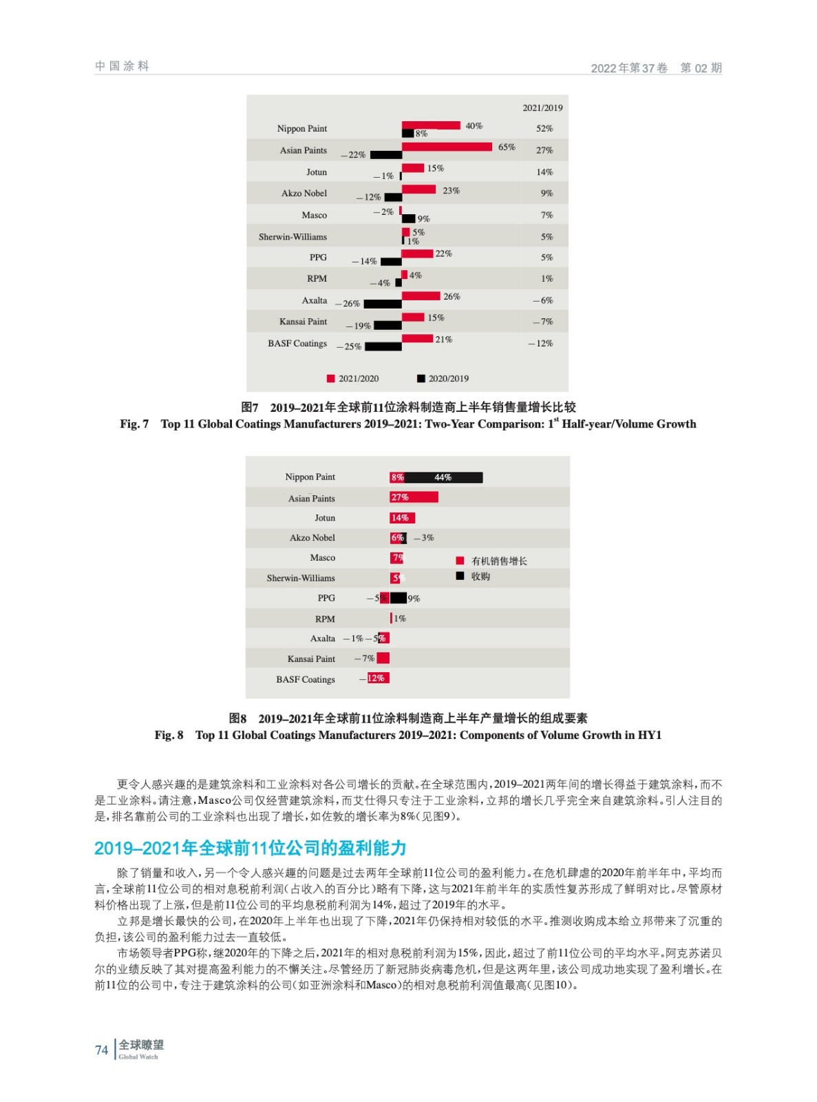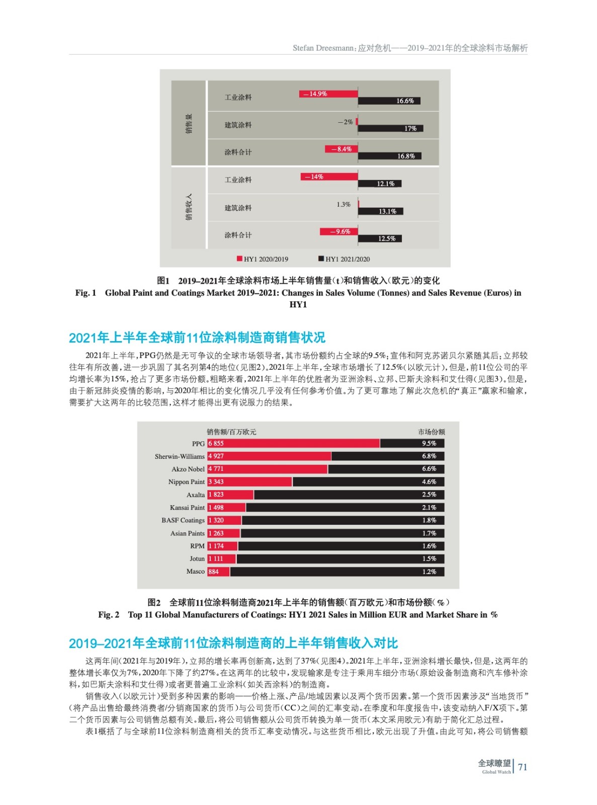 摘要:編者按:過去兩年,在涂料行業(yè)的前11位涂料制造商中,哪些公司能夠最好地應(yīng)對新冠肺炎疫情危機?在涂料行業(yè)跨國公司的2021年上半年財務(wù)報告中,銷售增長令人眼花繚亂。那么,“一切都好起來了”嗎?本文將進一步深入研究這些公司的銷售額、銷售量,分析“有機銷售增長”和“收購”,以及“建筑涂料”和“工業(yè)涂料”細分市場的相對變化。最后,將快速了解這些公司的盈利能力。