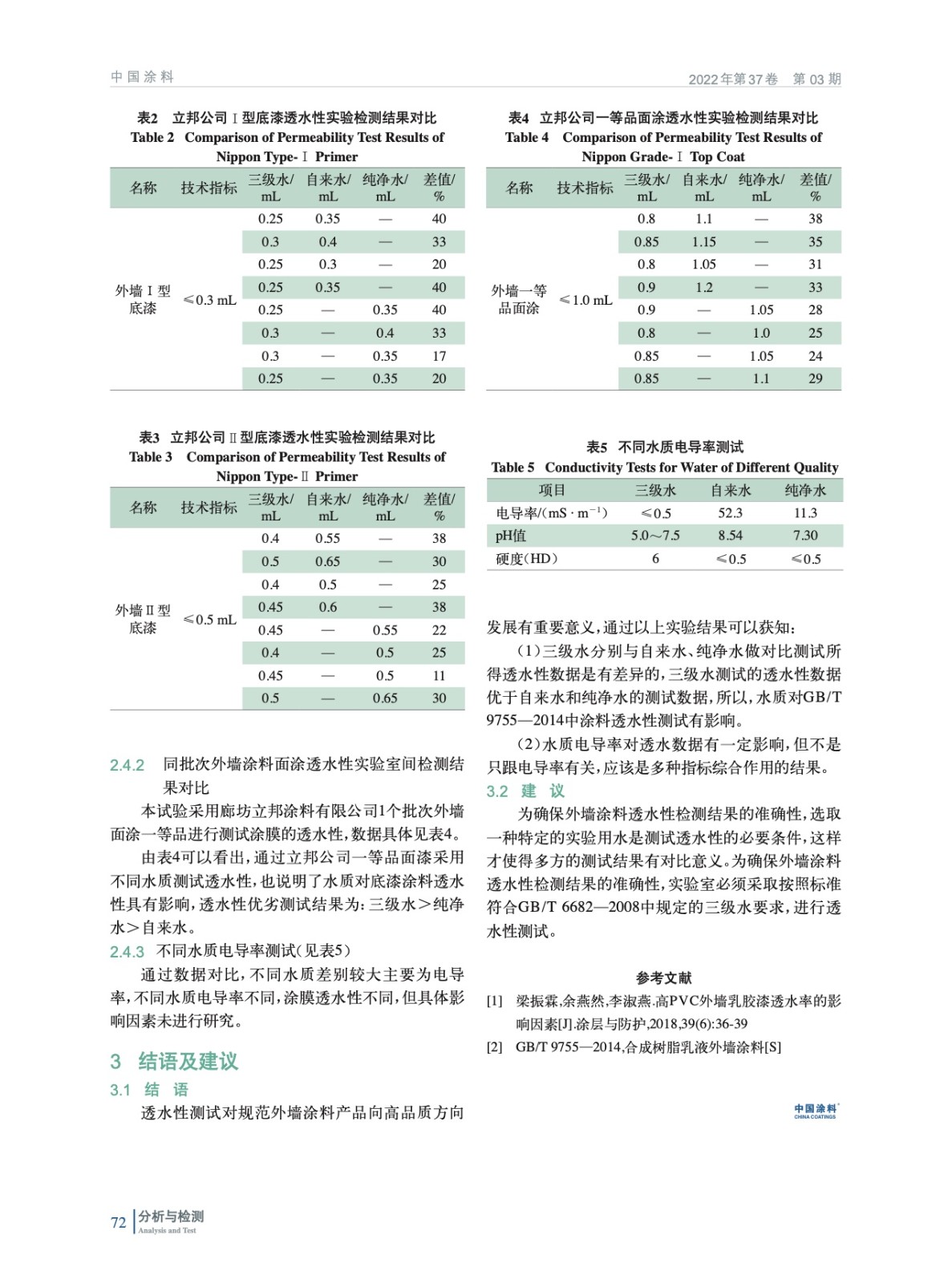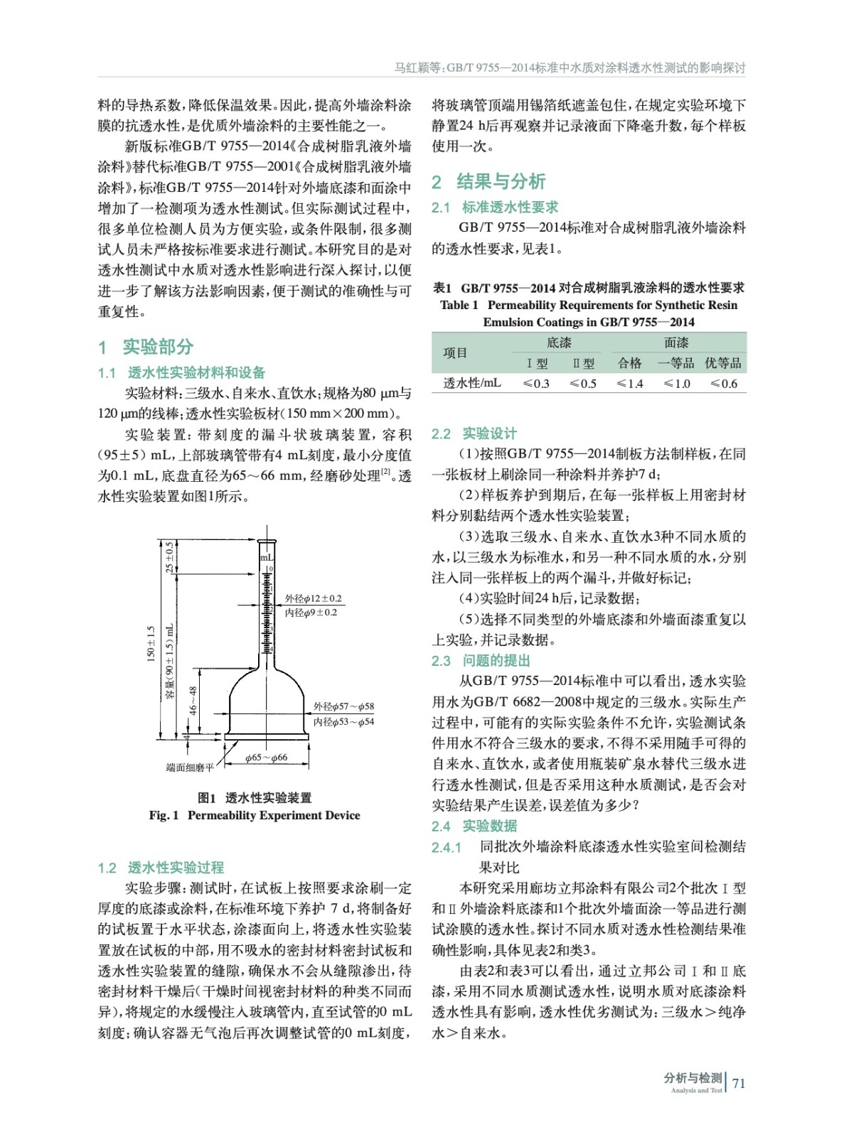 GB/T 9755—2014標(biāo)準(zhǔn)中水質(zhì)對涂料透水性測試的影響探討
