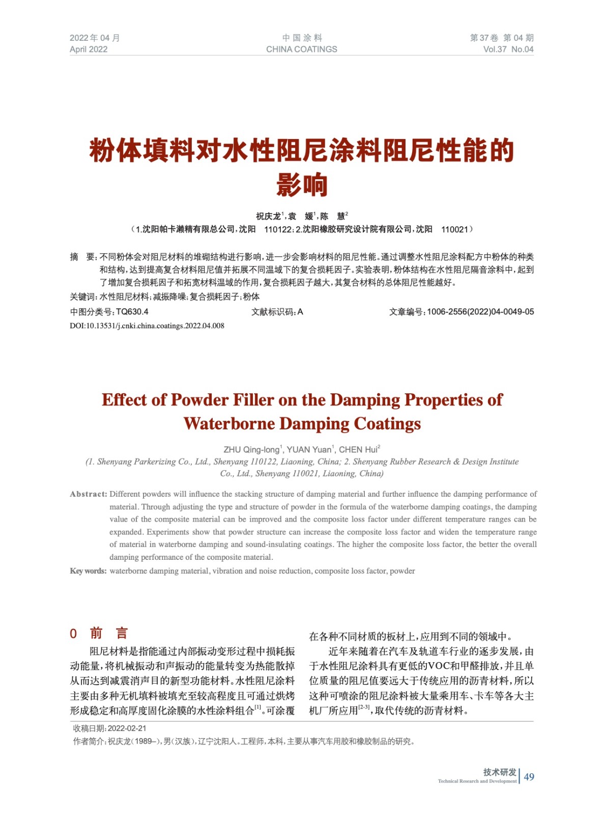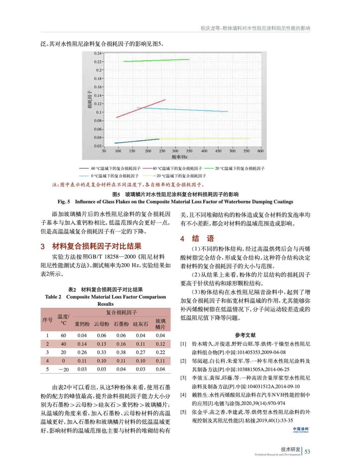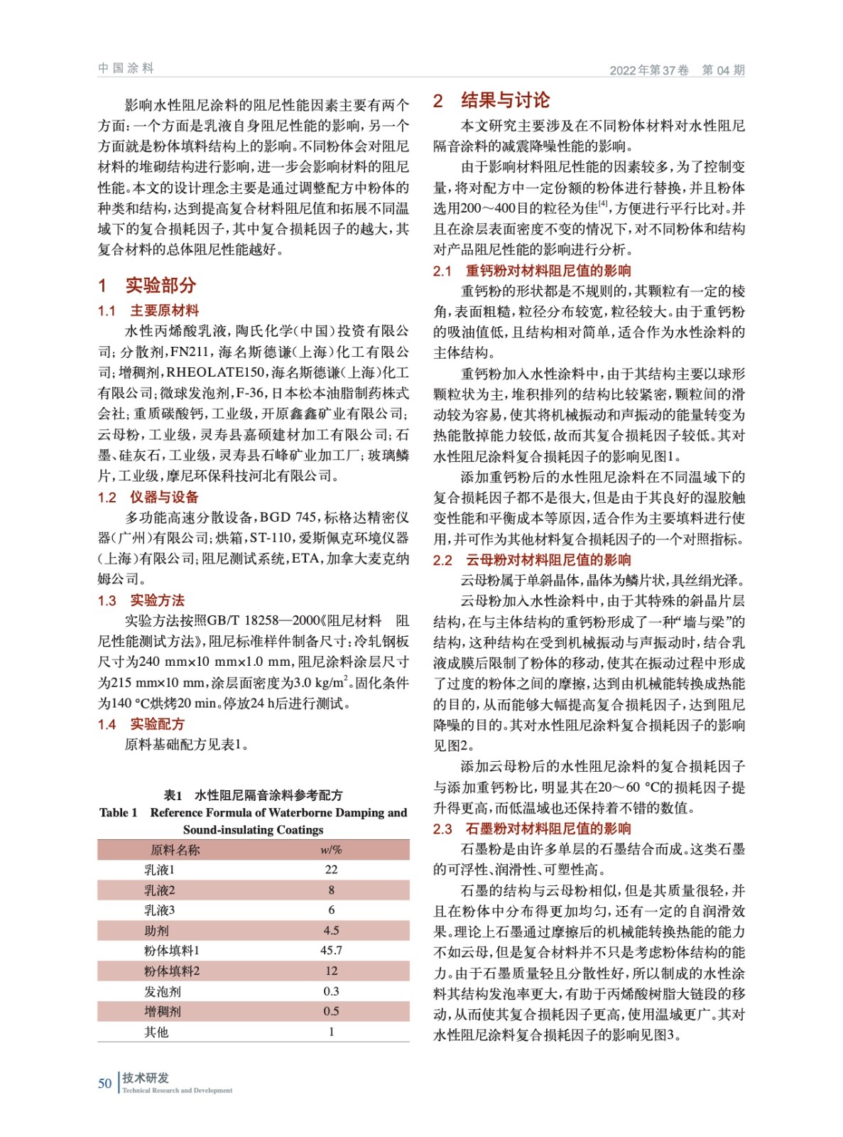 粉體填料對水性阻尼涂料阻尼性能的影響
