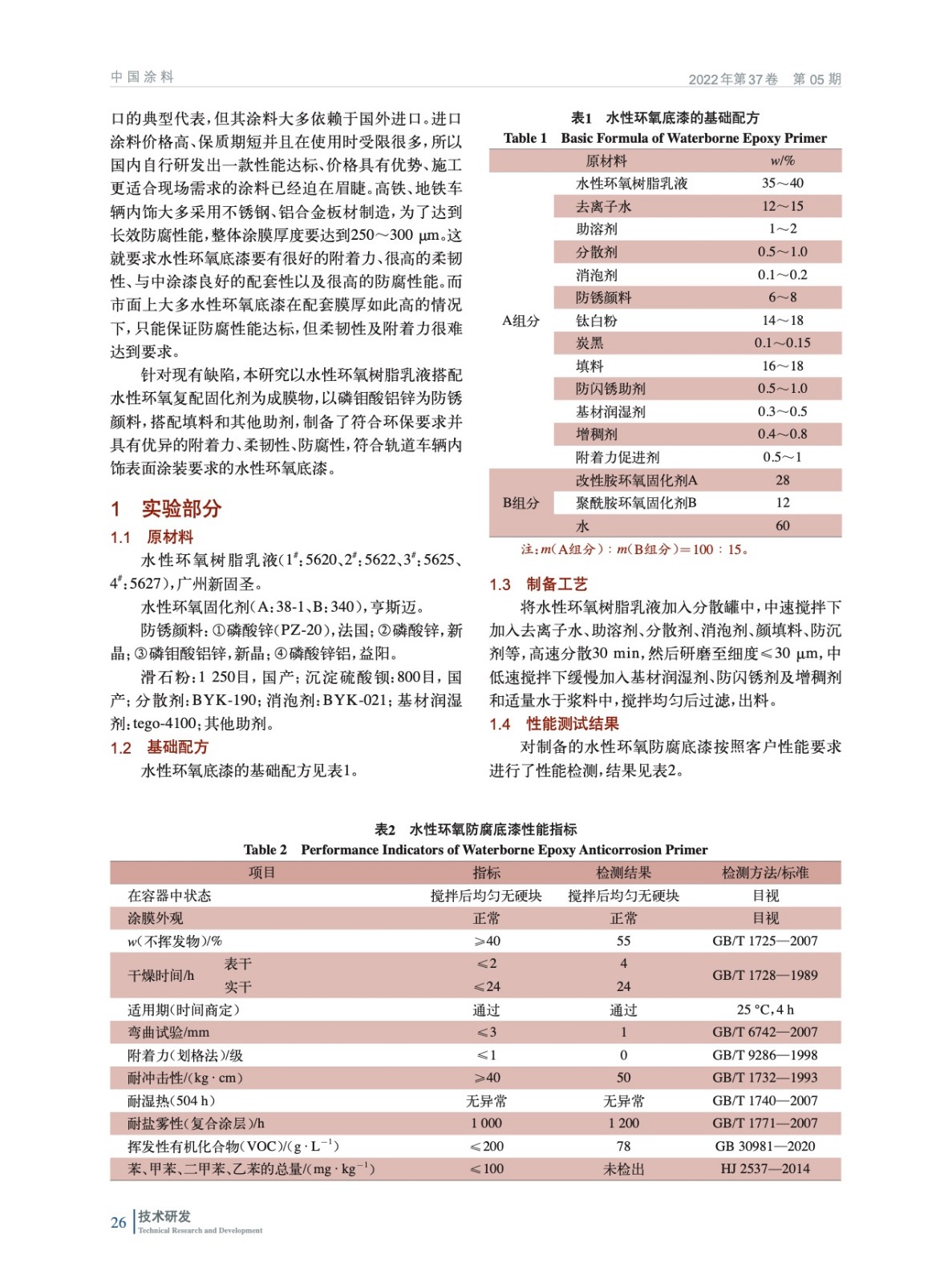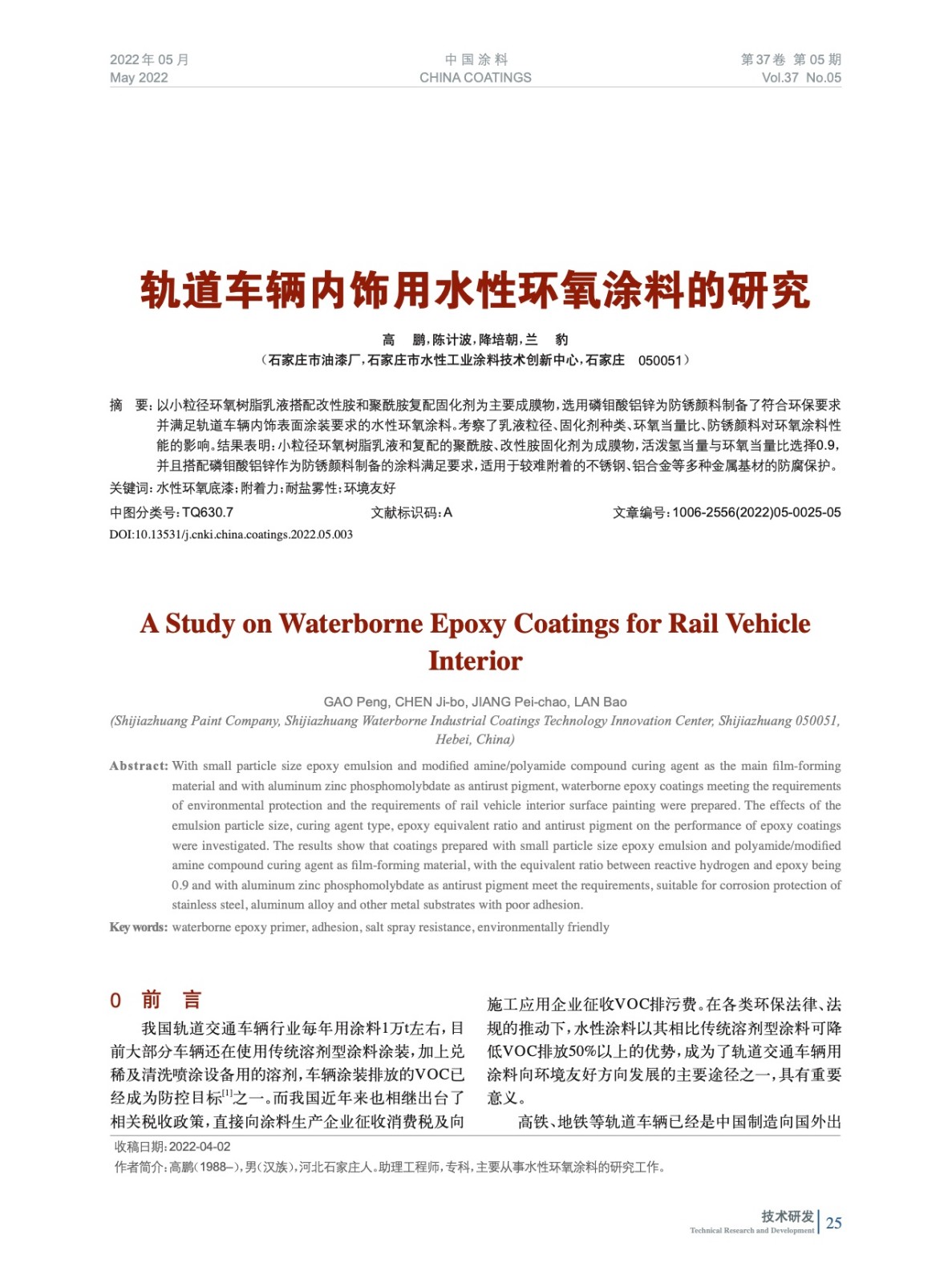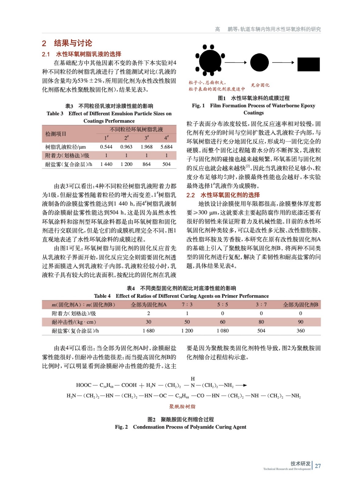 軌道車輛內飾用水性環(huán)氧涂料的研究