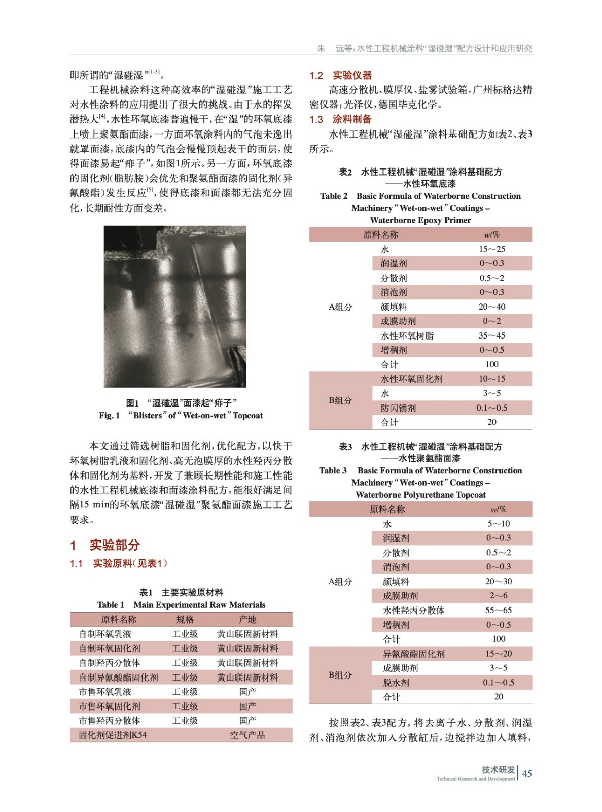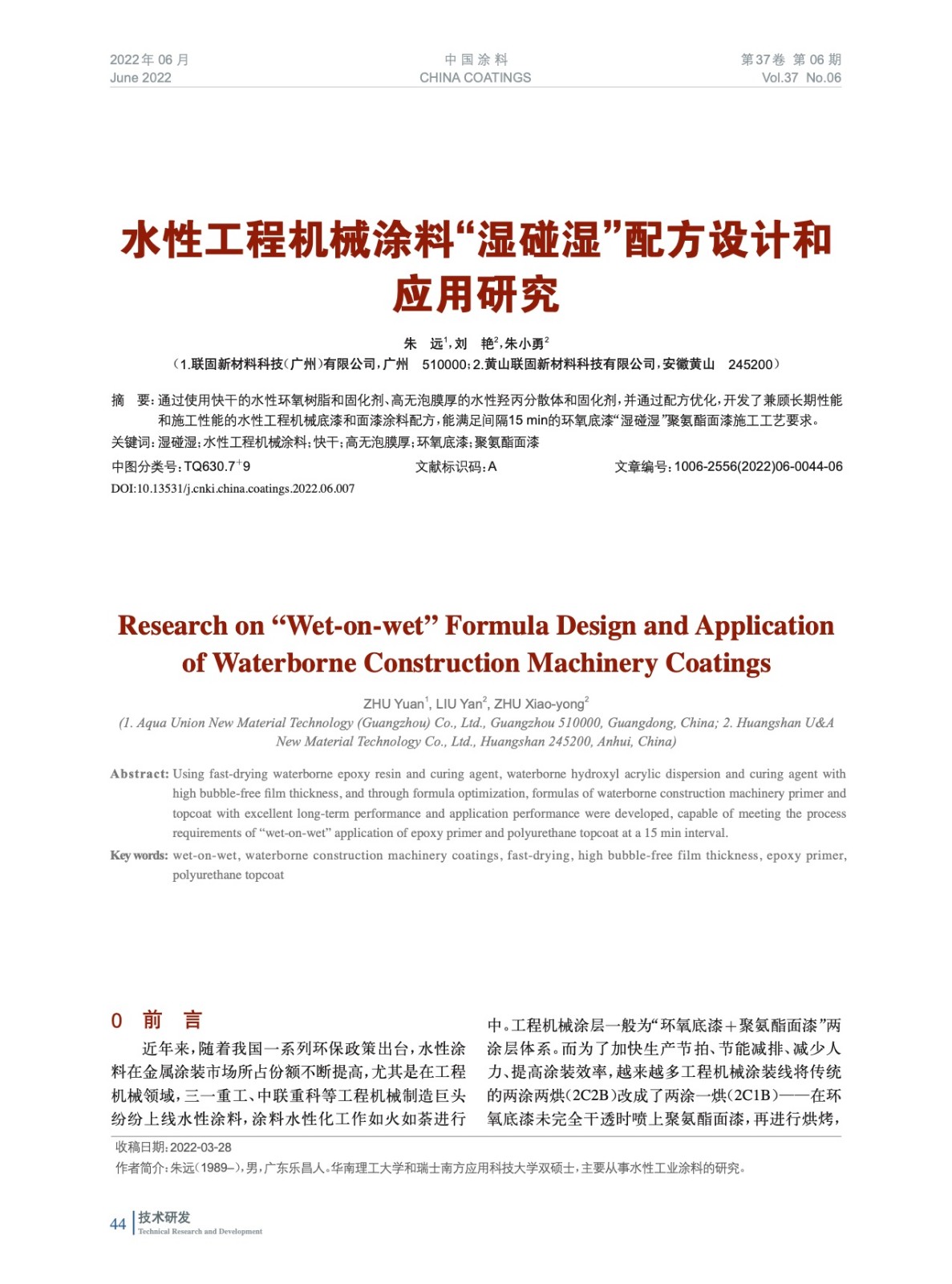 水性工程機(jī)械涂料“濕碰濕”配方設(shè)計(jì)和應(yīng)用研究
