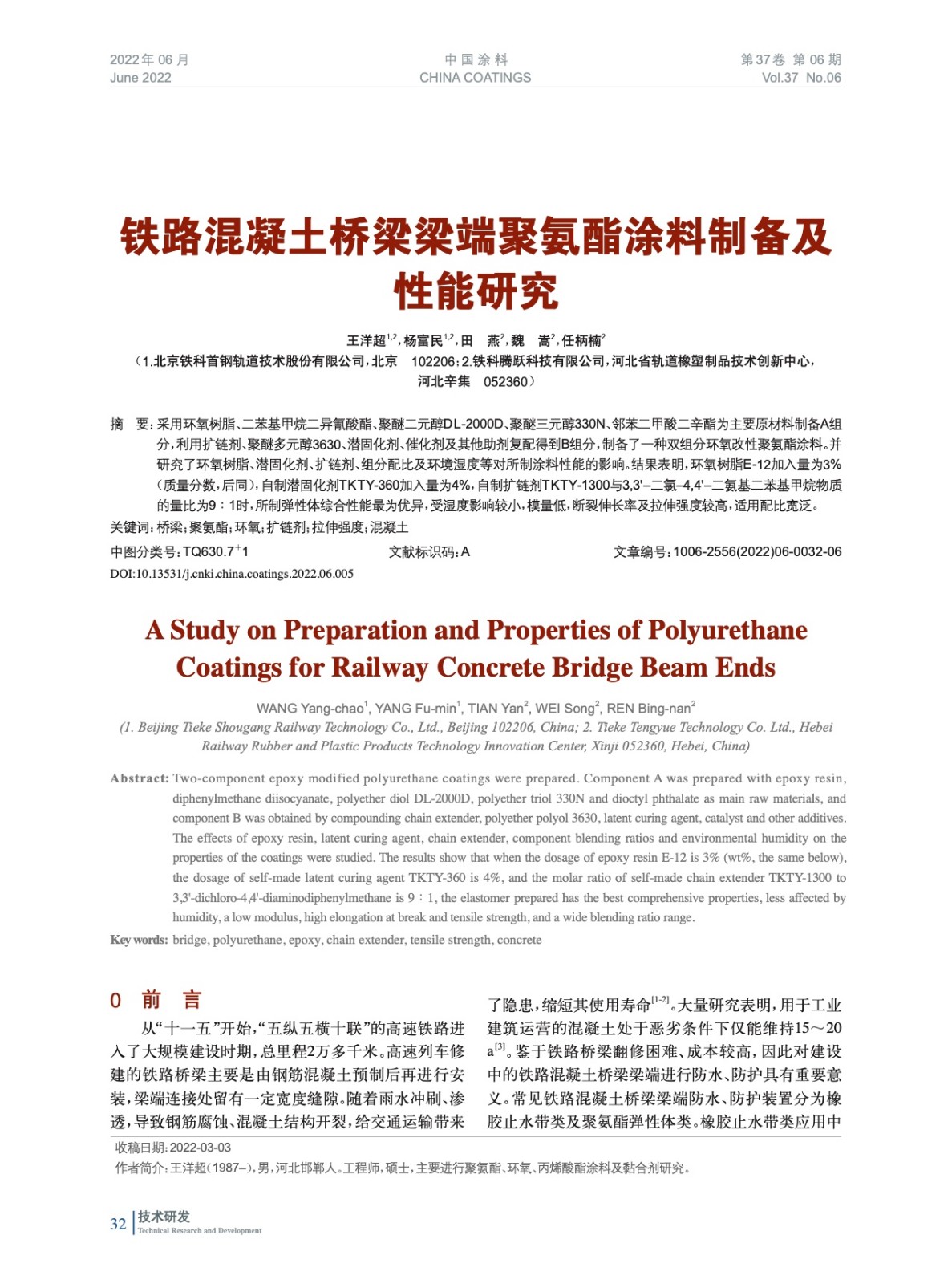 本文系作者@王洋超,楊富民,田 燕,魏 嵩,任柄楠 授權(quán)中國涂料網(wǎng)發(fā)表,并經(jīng)中國涂料網(wǎng)編輯,未經(jīng)允許不得轉(zhuǎn)載,如需轉(zhuǎn)載請聯(lián)系chinacoatingnet@vip.163.com