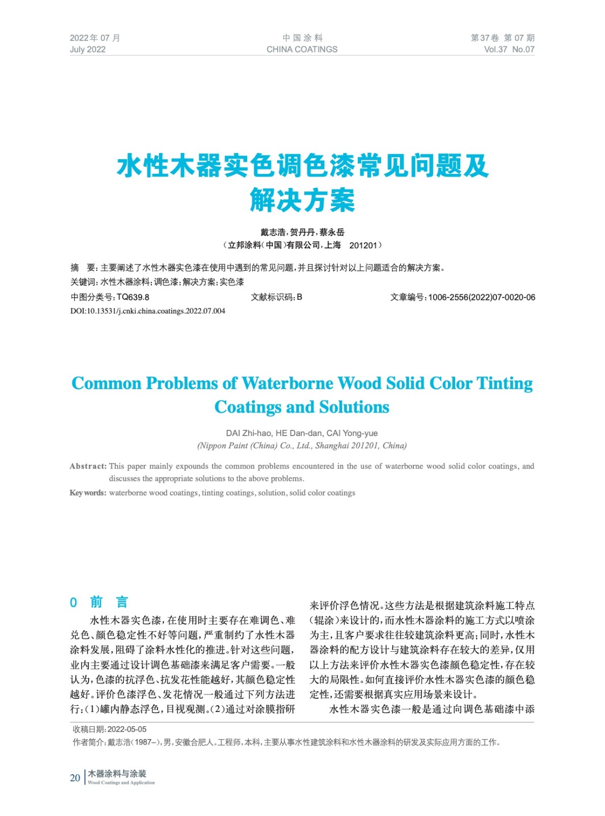 本文系作者@戴志浩,賀丹丹,蔡永岳 授權(quán)中國(guó)涂料網(wǎng)發(fā)表,并經(jīng)中國(guó)涂料網(wǎng)編輯,未經(jīng)允許不得轉(zhuǎn)載,如需轉(zhuǎn)載請(qǐng)聯(lián)系chinacoatingnet@vip.163.com