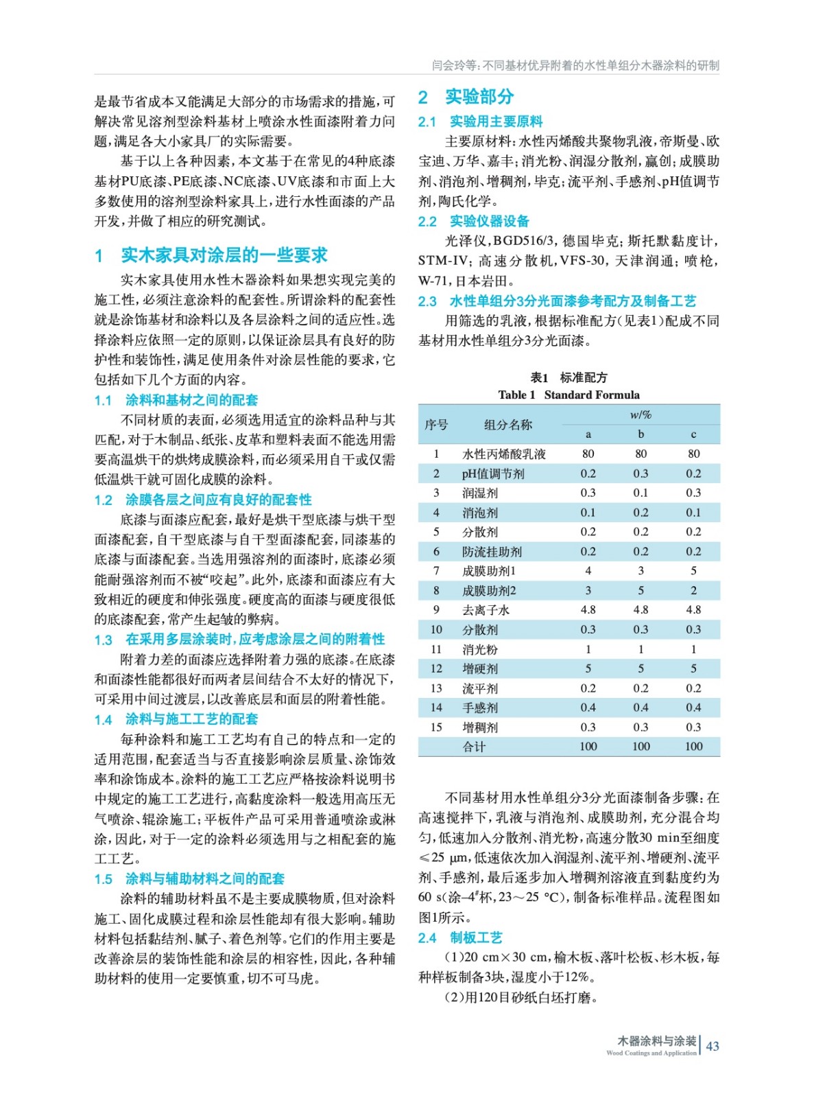 不同基材優(yōu)異附著的水性單組分木器涂料的研制