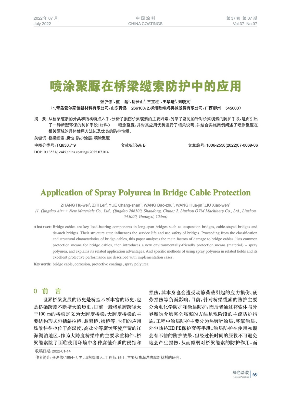 噴涂聚脲在橋梁纜索防護(hù)中的應(yīng)用