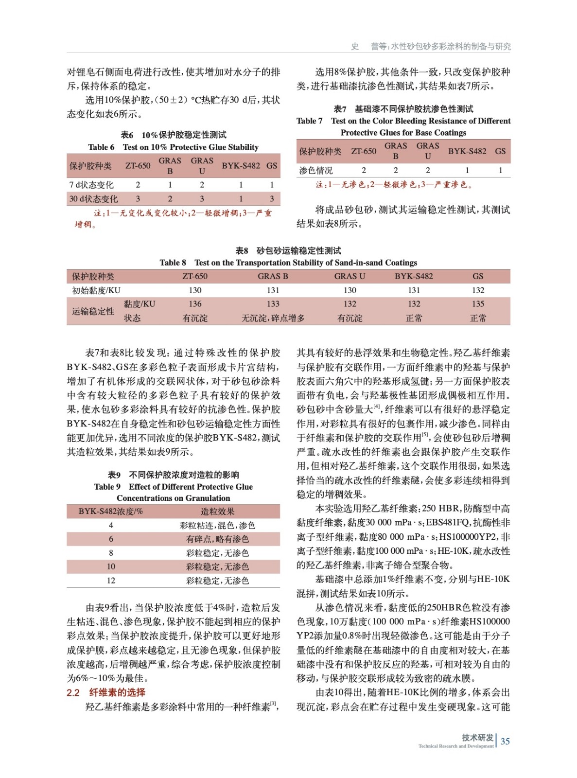 摘要:介紹了一種可以與真石漆相媲美的砂包砂涂料的制備,從保護(hù)膠、纖維素、乳膠方面平行實(shí)驗(yàn)對(duì)比,最終確定了其最佳添加量。實(shí)驗(yàn)結(jié)果表明,該砂包砂涂料,體系穩(wěn)定,耐水白性優(yōu)異,抗?jié)B色性好,耐候性佳,施工美觀,凹凸感強(qiáng),且較真石漆耗量少,價(jià)格低,前景可觀。