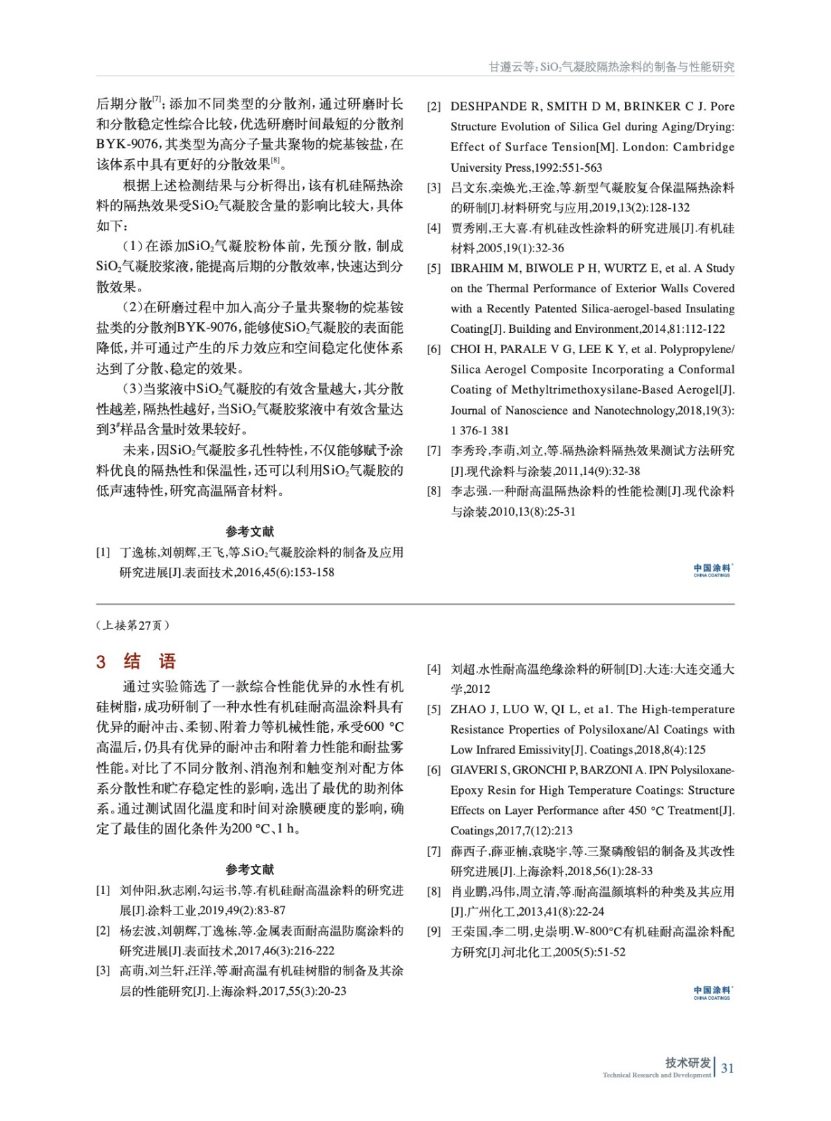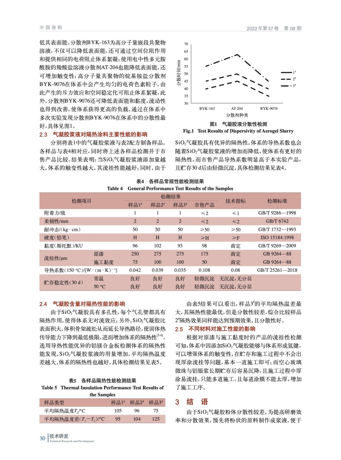 摘要:通過使用性能優(yōu)異的有機(jī)硅樹脂,可以使涂膜形成高度交聯(lián)的網(wǎng)狀結(jié)構(gòu),且能起到很好的屏蔽作用。另外,使用新型SiO2氣凝膠粉體材料,將其預(yù)先制備成一定比例的氣凝膠漿液,可提高在體系中的分散性。同時(shí),利用SiO2氣凝膠的多孔性、低熱導(dǎo)率等特點(diǎn)能夠使涂膜達(dá)到更好的隔熱效果,當(dāng)溫度高達(dá)200 ℃以上時(shí),依然能保持優(yōu)良的隔熱效果。