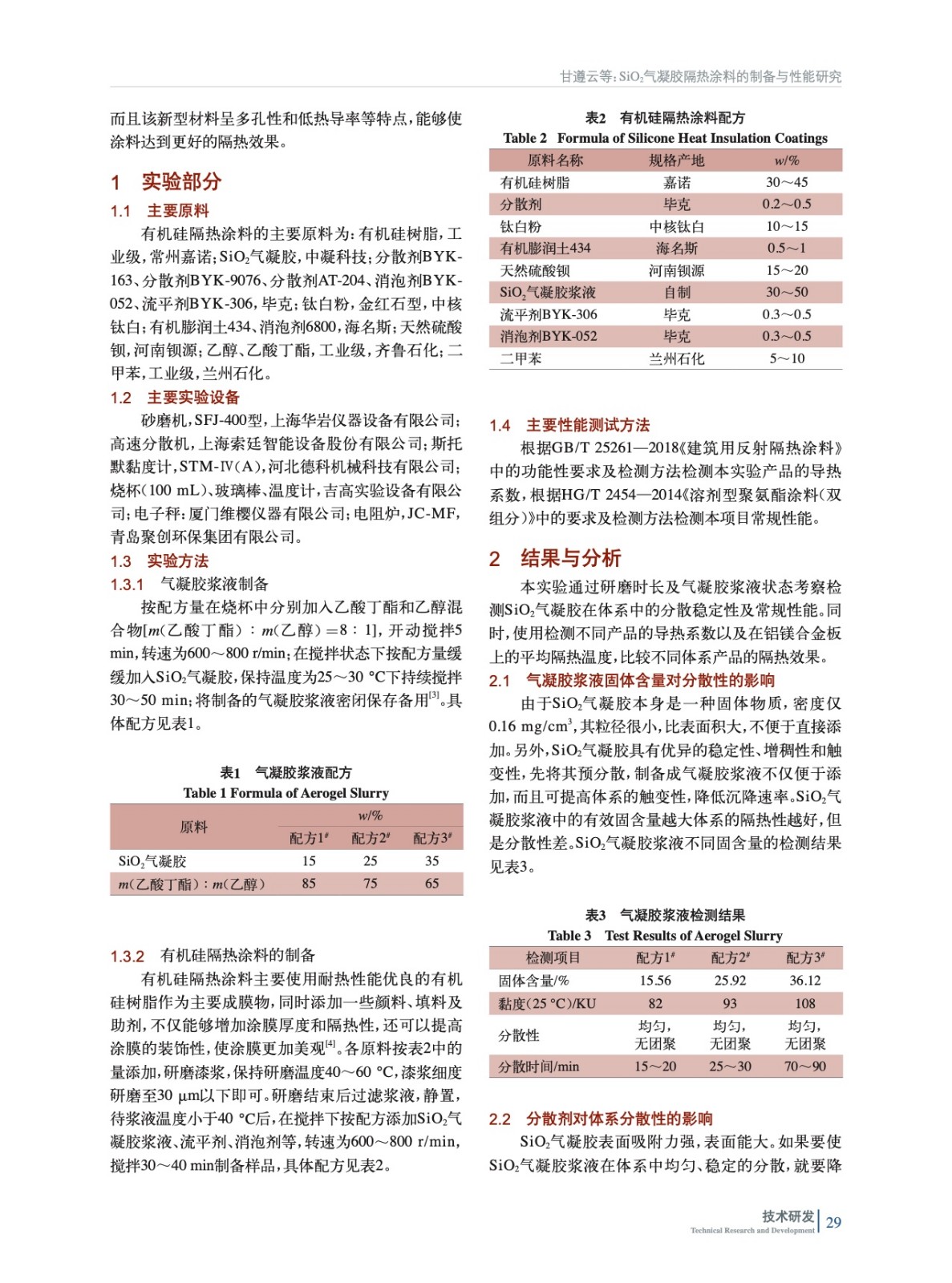SiO2氣凝膠隔熱涂料的制備與性能研究