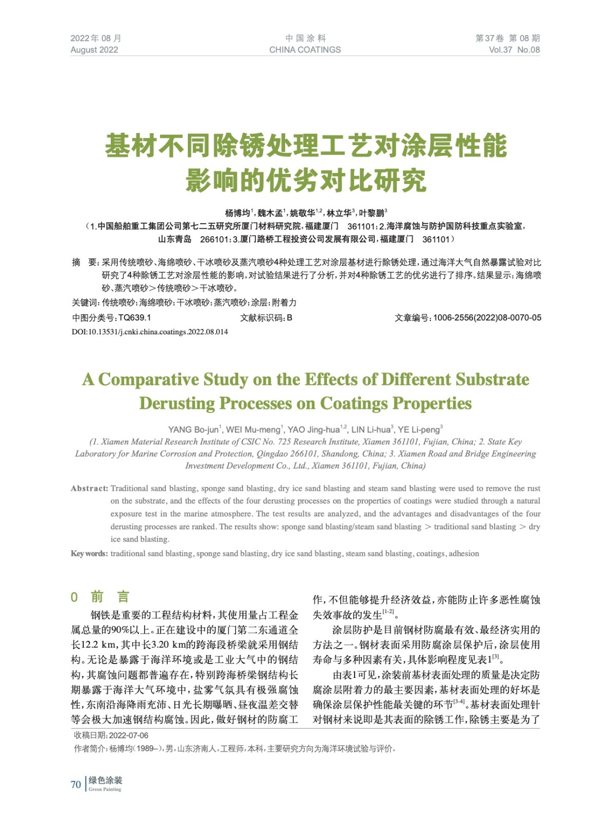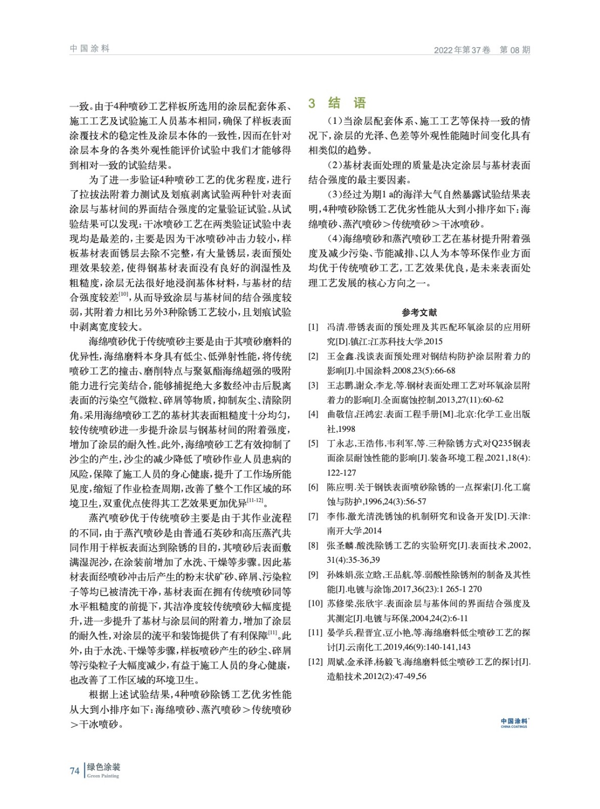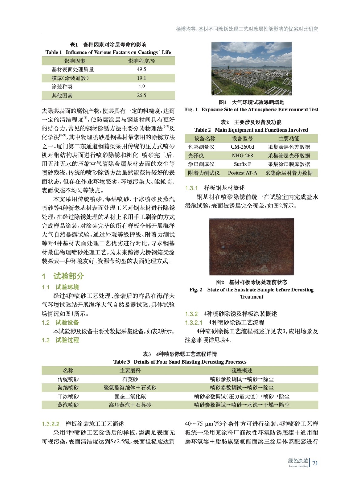 基材不同除銹處理工藝對涂層性能影響的優(yōu)劣對比研究