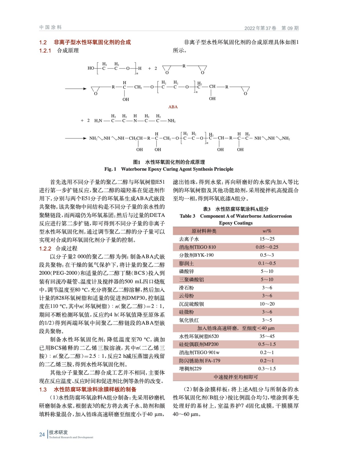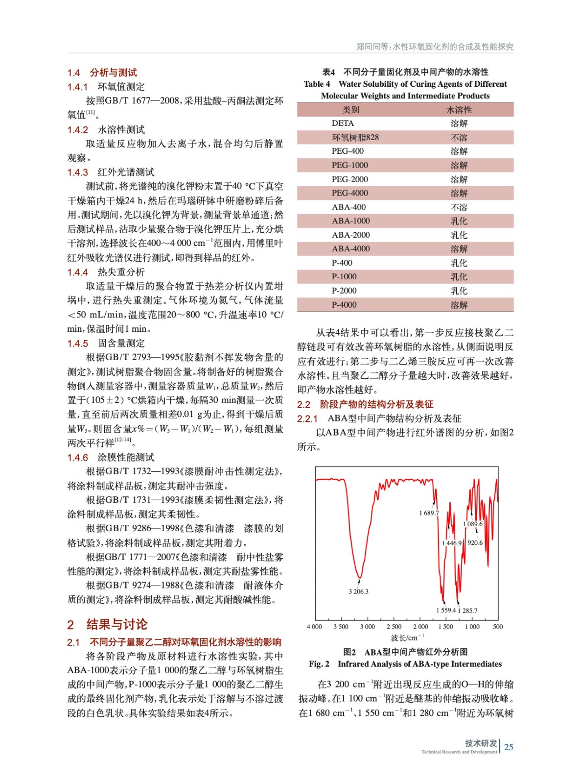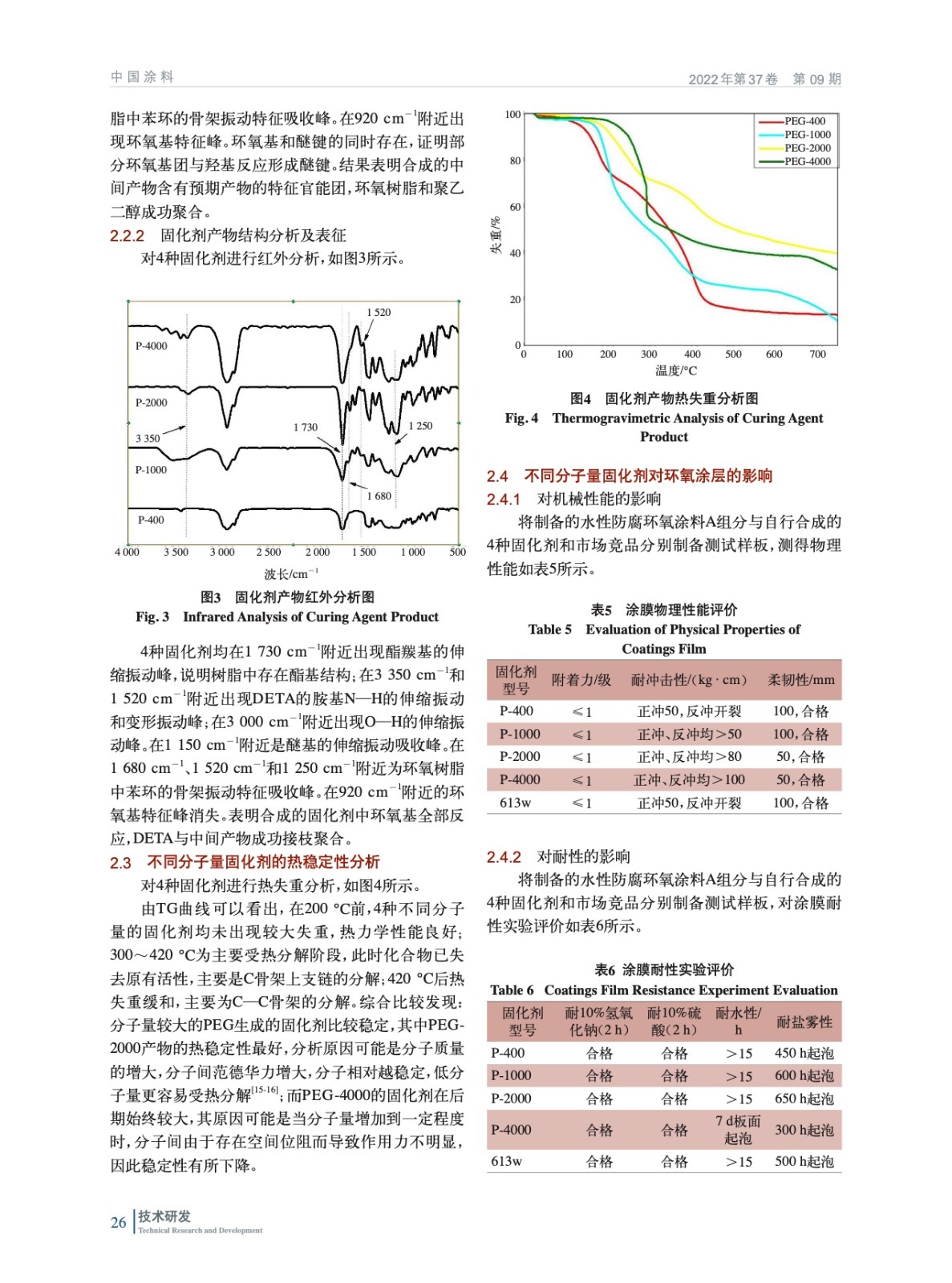 摘要:以二乙烯三胺為基礎(chǔ)胺改性對象,聚乙二醇為親水鏈段,雙酚A環(huán)氧樹脂828為疏水鏈段,通過設(shè)計分子鏈嵌段構(gòu)型制備非離子型水性環(huán)氧固化劑。水溶性實驗和環(huán)氧值測定表明聚乙二醇與環(huán)氧樹脂反應(yīng),并有效改善產(chǎn)物的親水性。紅外光譜分析產(chǎn)物結(jié)構(gòu)與設(shè)想一致,熱失重分析測試了合成固化劑的熱穩(wěn)定性。實驗結(jié)果表明,選用的聚乙二醇分子量為2 000的環(huán)氧固化劑常溫成膜最好,綜合性能最佳。